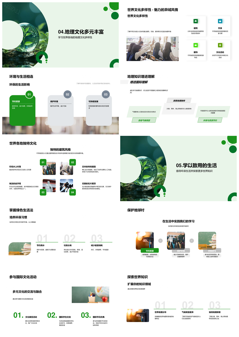 这是一张环球地理探秘守护地球多样文明气候环境PPT模板,包含环球地理、探秘、守护、地球、多样、文明、气候、环境等主题内容,也可用作守护地球多样文明气候、地球多样文明气候环境、环球地理探秘守护、探秘守护地球文明、守护地球多样文明、守护地球气候环境、地球文明气候环境、地理探秘地球文明、环球地理气候环境、环球地理探秘、地理探秘守护、守护地球气候、文明气候环境、环球地理、守护地球、气候环境等PPT场景使用。 风云办公提供的环球地理探秘守护地球多样文明气候环境PPT模板,下载格式为pptx,一共28页,作品中文字及图均可以修改和编辑,图片更改请在作品中右键图片并更换,文字修改请直接点击文字进行修改。
