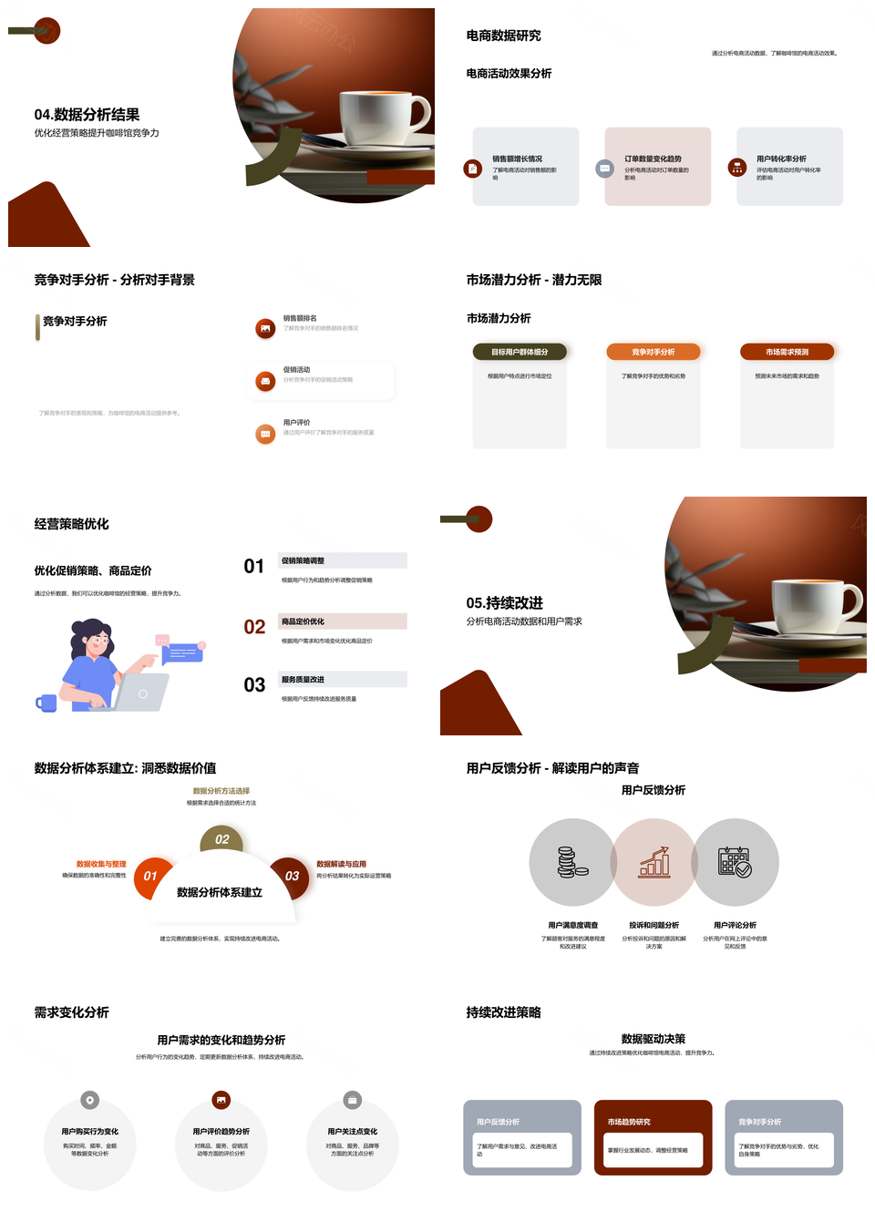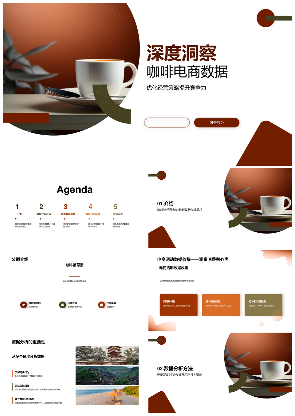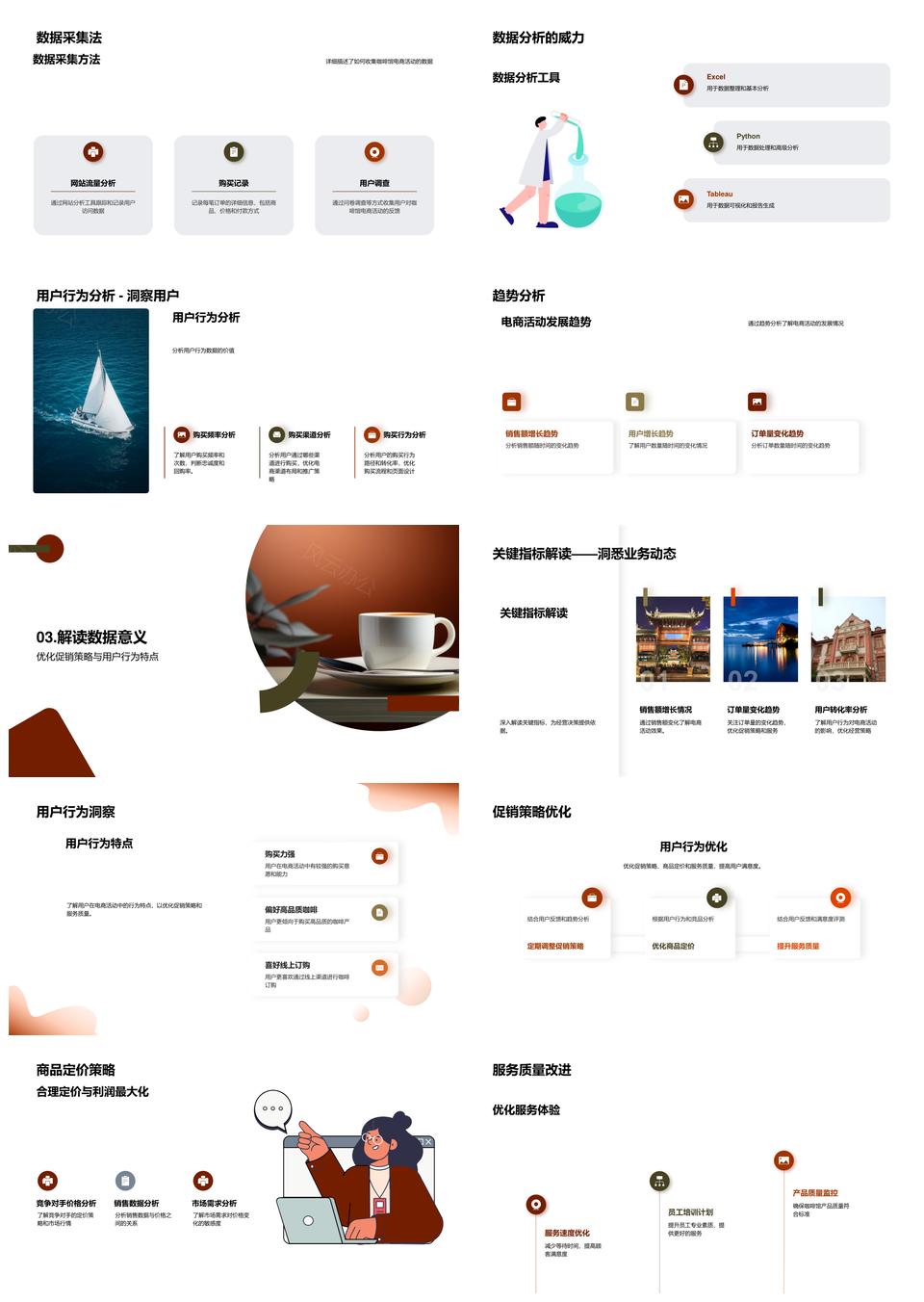 风云办公提供的咖啡电商活动用户行为趋势分析PPT模板,下载格式为pptx,一共28页,作品中文字及图均可以修改和编辑,图片更改请在作品中右键图片并更换,文字修改请直接点击文字进行修改。