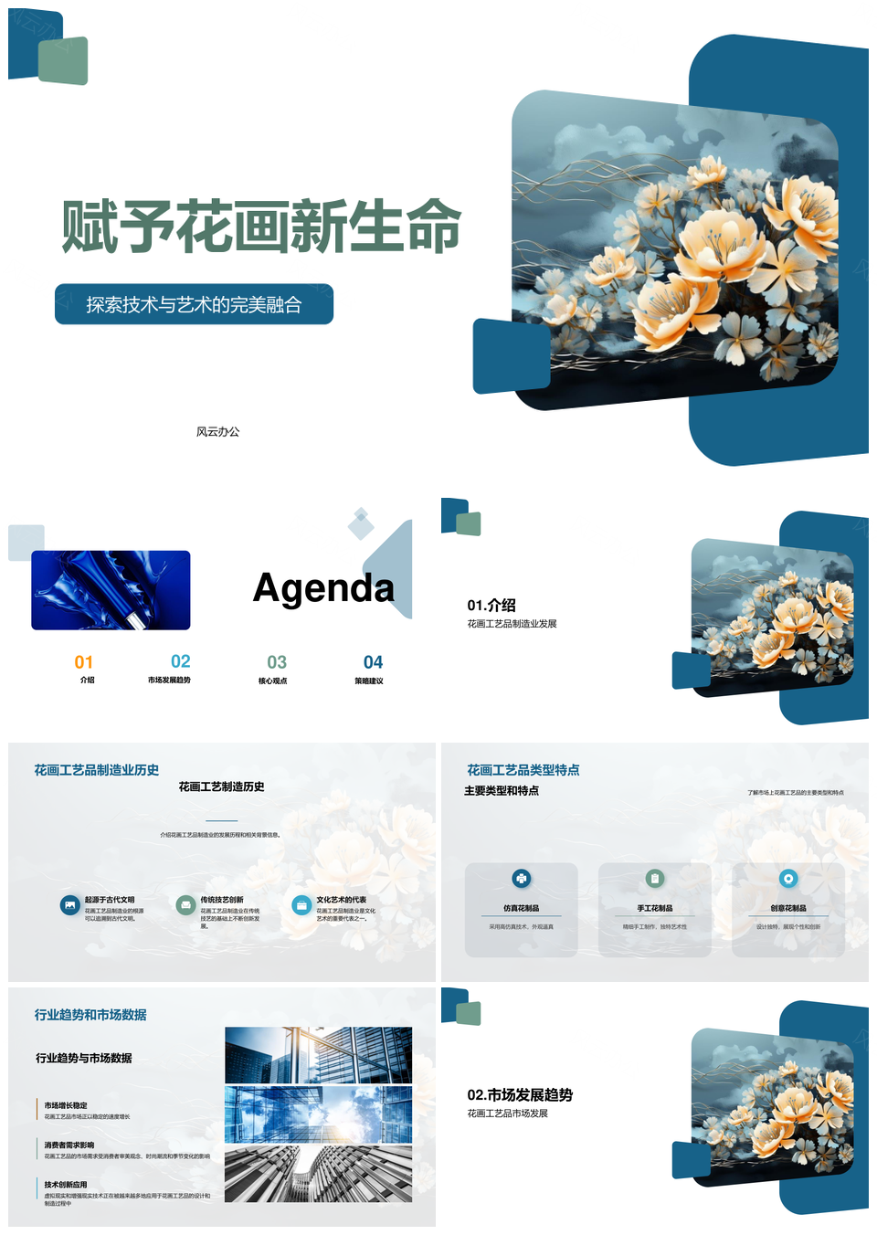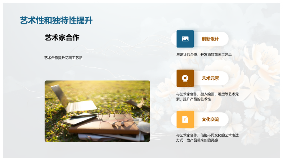 花画工艺品艺术工艺价值市场发展探析PPT模板