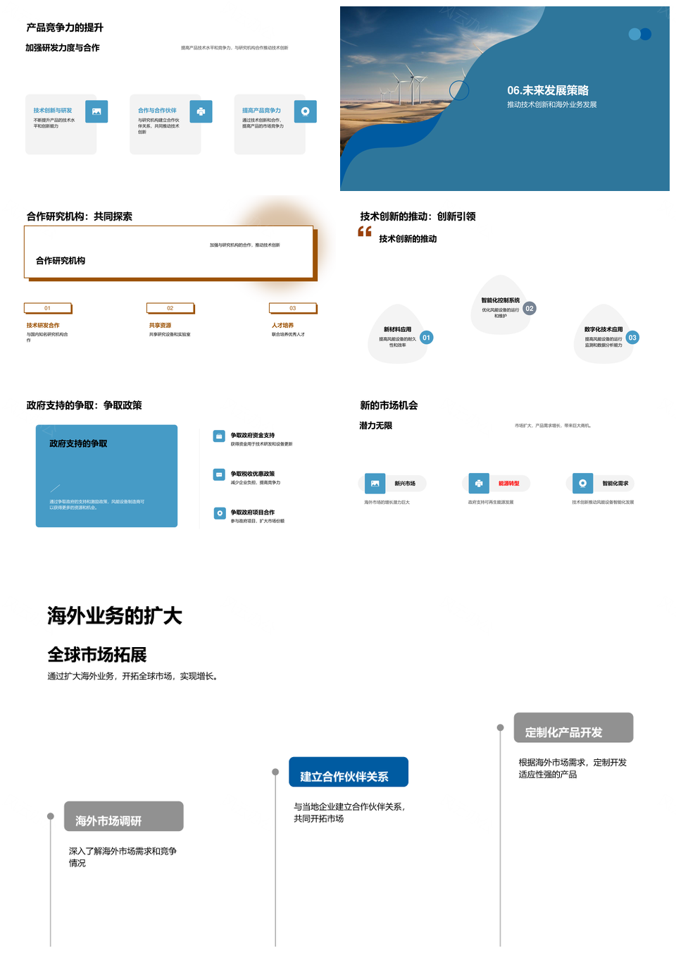 这是一张全球风能原动设备发展政府支持装机容量前景PPT模板,包含全球、风能、原动设备、发展、政府、支持、装机容量、前景等主题内容,也可用作全球风能原动设备发展政府支持、风能原动设备发展政府支持、全球风能原动设备发展政府、风能原动设备发展政府、全球风能原动设备发展、风能原动设备发展政府支持装机容量、原动设备发展政府支持装机容量、政府支持装机容量前景、发展政府支持装机容量、支持装机容量前景、全球风能原动设备、原动设备发展政府、政府支持装机容量、装机容量前景、风能原动设备发展等PPT场景使用。 风云办公提供的全球风能原动设备发展政府支持装机容量前景PPT模板,下载格式为pptx,一共35页,作品中文字及图均可以修改和编辑,图片更改请在作品中右键图片并更换,文字修改请直接点击文字进行修改。