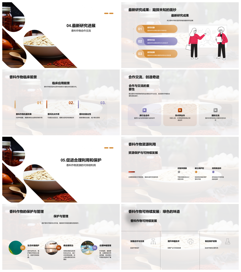 风云办公提供的香料作物药用成分与健康应用机制研究PPT模板,下载格式为pptx,一共26页,作品中文字及图均可以修改和编辑,图片更改请在作品中右键图片并更换,文字修改请直接点击文字进行修改。