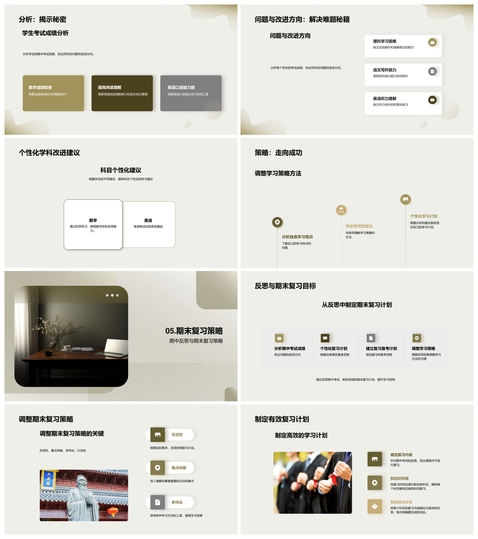 这是一张期中期末学习策略反思与调整提升PPT模板,包含期中、期末、学习策略、反思、调整、提升等主题内容,也可用作期中期末学习策略反思、学习策略反思调整提升、期中期末反思调整提升、期末学习策略反思调整、期中期末学习策略、学习策略反思调整、反思调整提升、期末学习策略反思、期中学习策略反思、期末反思调整提升、期中期末、学习策略反思、反思调整、调整提升、期中学习策略等PPT场景使用。