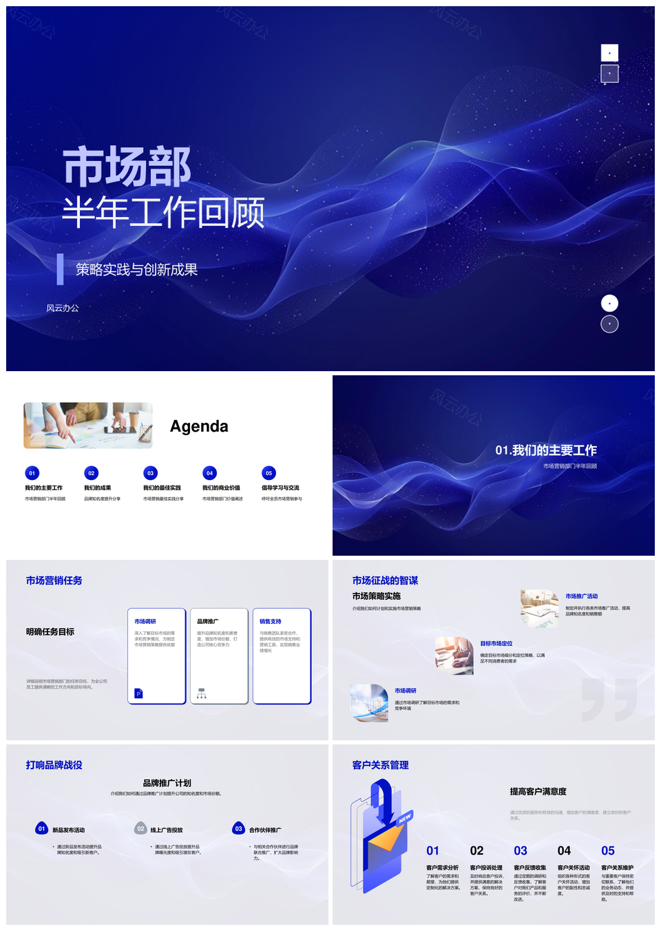 这是一张市场部半年市场策略品牌客户创新成果回顾PPT模板,包含市场部、半年、市场策略、品牌、客户、创新成果、回顾等主题内容,也可用作市场部半年市场策略品牌客户、半年市场策略品牌客户创新、市场策略品牌客户创新成果、策略品牌客户创新成果回顾、市场部策略品牌客户创新、半年策略品牌客户创新成果、市场品牌客户创新成果回顾、市场部品牌客户创新成果回顾、半年市场客户创新成果回顾、市场策略客户创新成果回顾、市场部半年创新成果回顾、市场部半年策略品牌客户、市场策略品牌客户创新、品牌客户创新成果回顾、半年市场策略创新成果等PPT场景使用。 风云办公提供的市场部半年市场策略品牌客户创新成果回顾PPT模板,下载格式为pptx,一共28页,作品中文字及图均可以修改和编辑,图片更改请在作品中右键图片并更换,文字修改请直接点击文字进行修改。