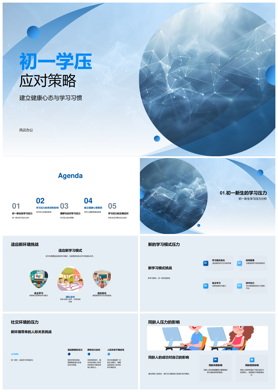 风云办公提供的初一学压应对策略心态习惯环境调整PPT模板,下载格式为pptx,一共26页,作品中文字及图均可以修改和编辑,图片更改请在作品中右键图片并更换,文字修改请直接点击文字进行修改。