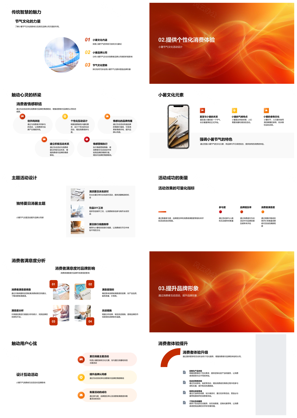 这是一张小暑互动营销活动提升品牌忠诚消费体验PPT模板,包含小暑、互动、营销活动、提升、品牌、忠诚、消费、体验等主题内容,也可用作小暑互动营销活动、互动营销活动提升、营销活动提升品牌、活动提升品牌忠诚、提升品牌忠诚消费、品牌忠诚消费体验、互动营销活动、营销活动提升、活动提升品牌、提升品牌忠诚、品牌忠诚消费、忠诚消费体验、小暑互动、互动营销、消费体验等PPT场景使用。 风云办公提供的小暑互动营销活动提升品牌忠诚消费体验PPT模板,下载格式为pptx,一共33页,作品中文字及图均可以修改和编辑,图片更改请在作品中右键图片并更换,文字修改请直接点击文字进行修改。