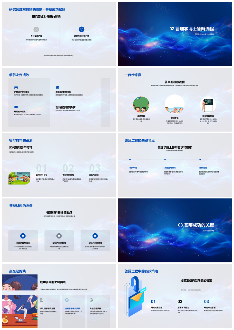 风云办公提供的管理学博士答辩技巧流程材料结构指导PPT模板,下载格式为pptx,一共33页,作品中文字及图均可以修改和编辑,图片更改请在作品中右键图片并更换,文字修改请直接点击文字进行修改。