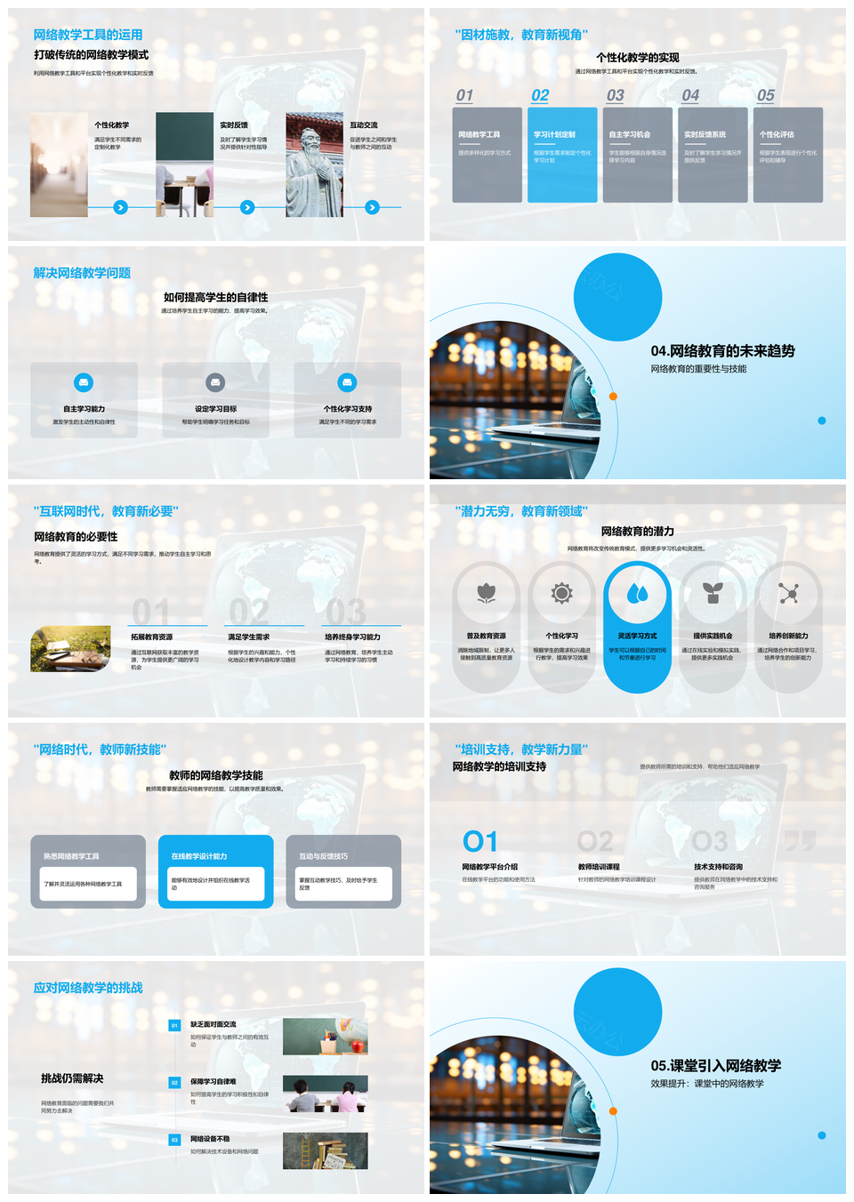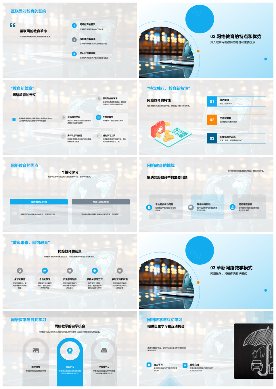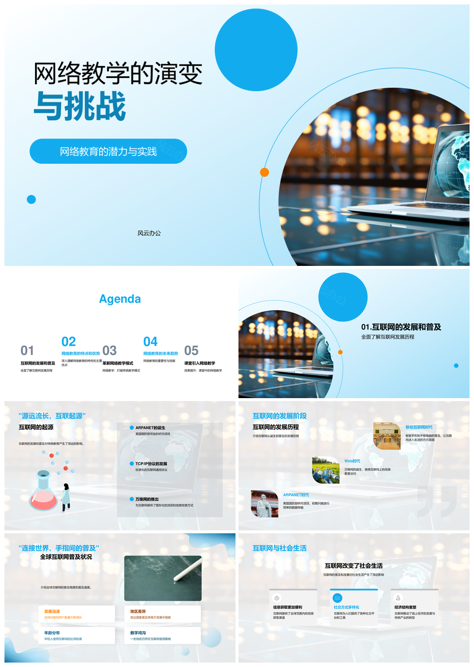 风云办公提供的网络教育革新推动个性化互动自学工具PPT模板,下载格式为pptx,一共33页,作品中文字及图均可以修改和编辑,图片更改请在作品中右键图片并更换,文字修改请直接点击文字进行修改。