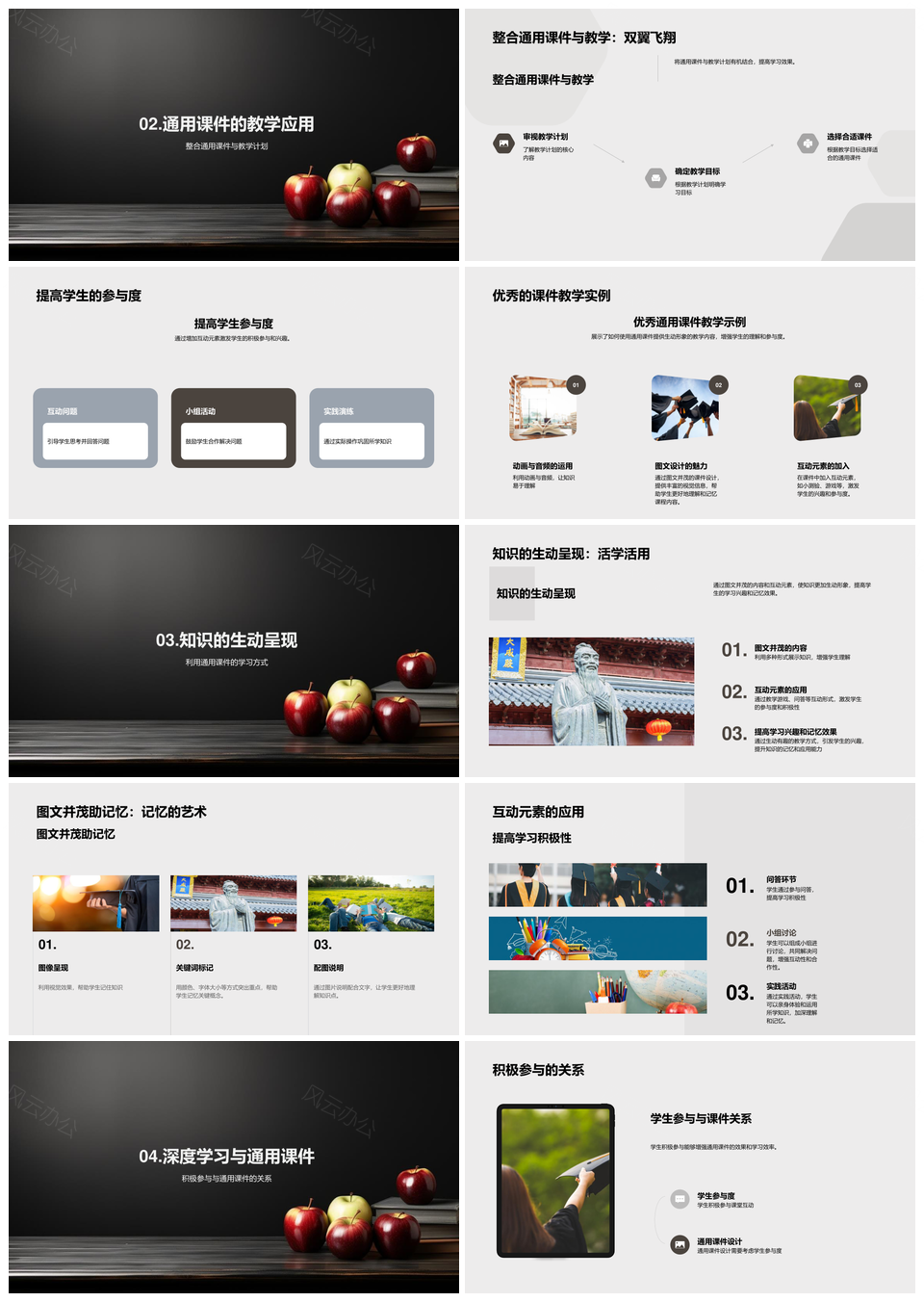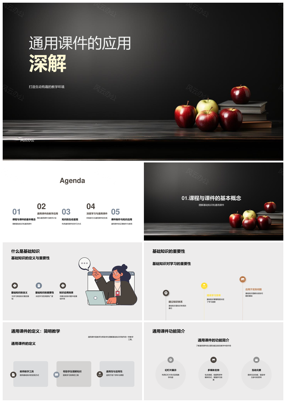 风云办公提供的通用课件教学应用与互动设计基础PPT模板,下载格式为pptx,一共24页,作品中文字及图均可以修改和编辑,图片更改请在作品中右键图片并更换,文字修改请直接点击文字进行修改。
