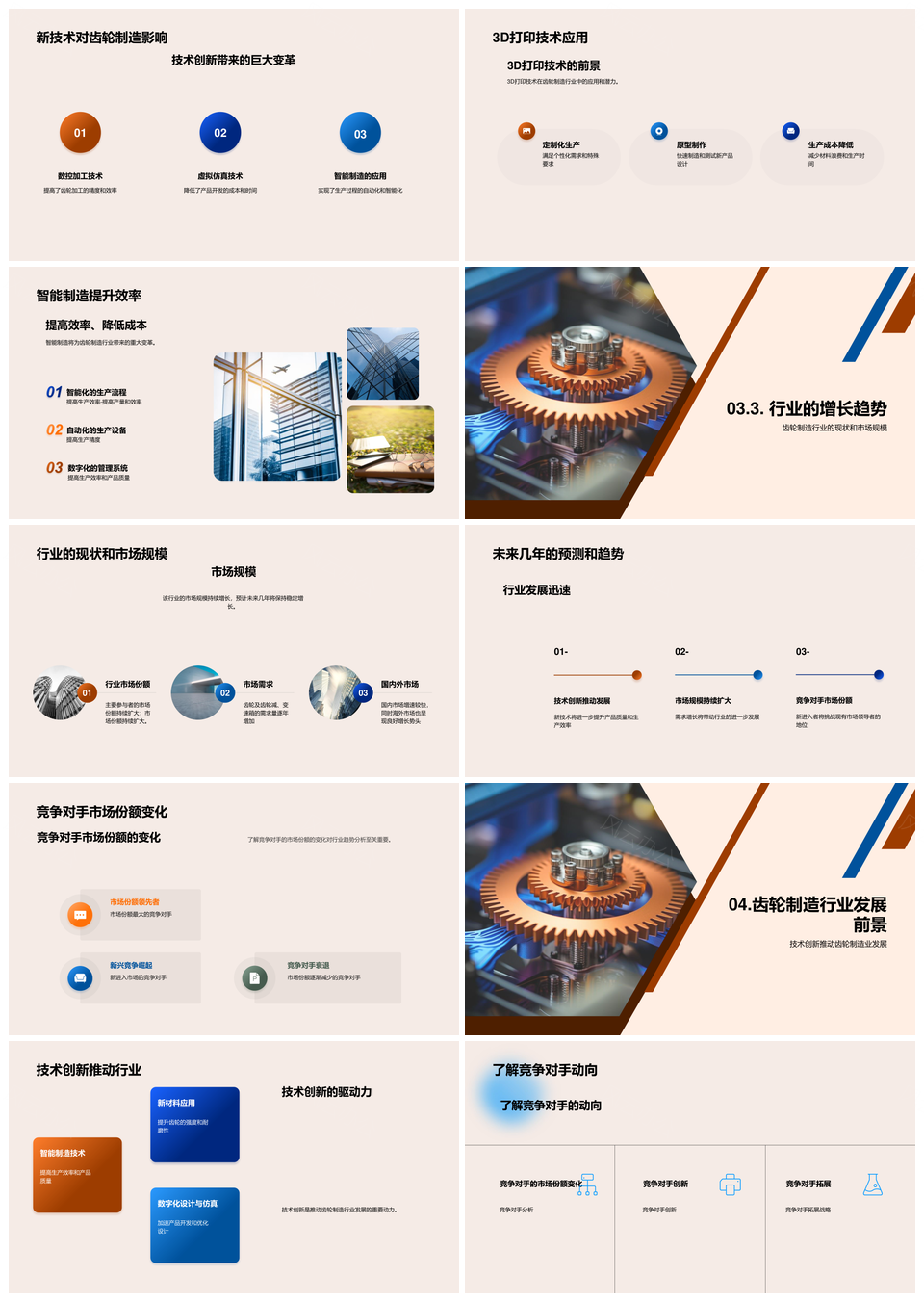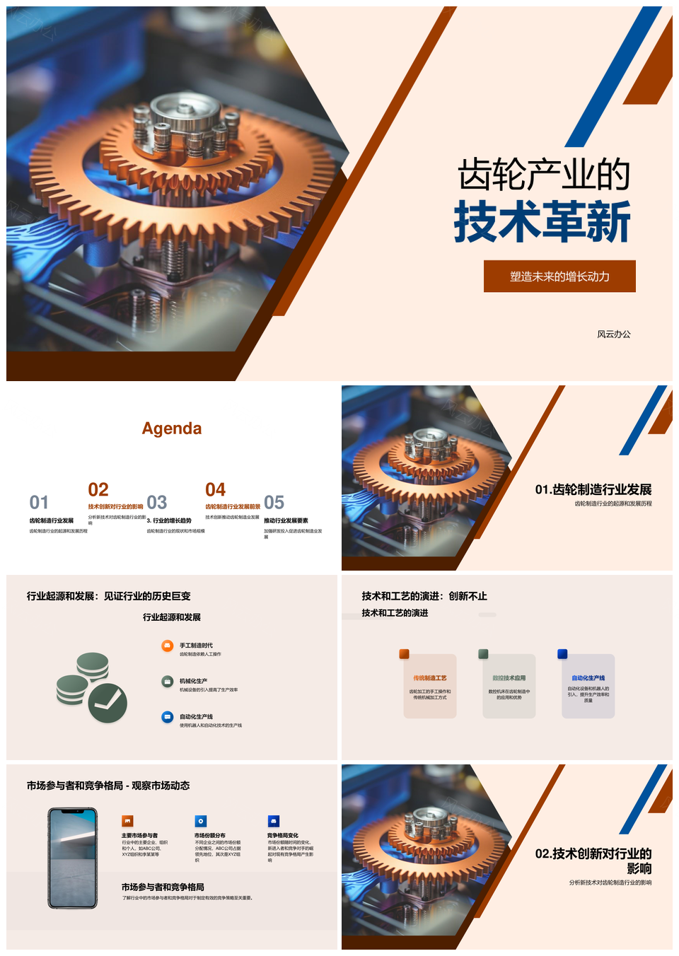 风云办公提供的齿轮制造业技术创新与竞争格局演进PPT模板,下载格式为pptx,一共23页,作品中文字及图均可以修改和编辑,图片更改请在作品中右键图片并更换,文字修改请直接点击文字进行修改。