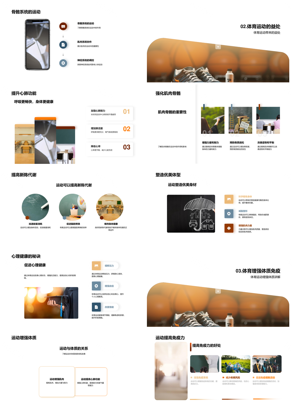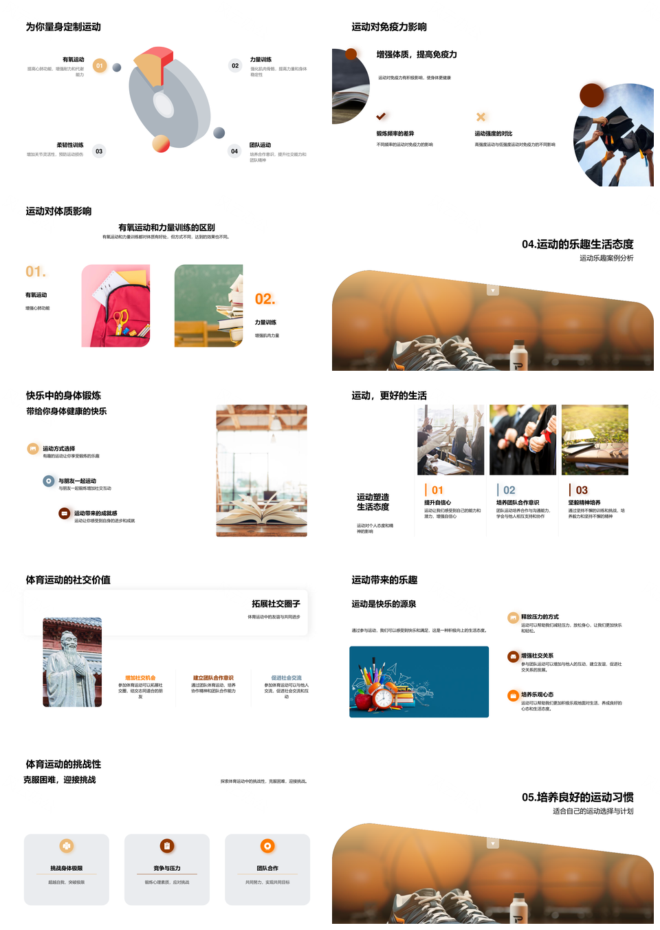 这是一张运动健康体育生活生理代谢免疫提升活力PPT模板,包含运动、健康、体育、生活、生理、代谢、免疫、活力等主题内容,也可用作运动健康体育生活、健康体育生活生理、体育生活生理代谢、生活生理代谢免疫、生理代谢免疫提升、代谢免疫提升活力、运动健康体育、健康体育生活、体育生活生理、生活生理代谢、生理代谢免疫、代谢免疫提升、免疫提升活力、运动健康、健康体育、体育生活等PPT场景使用。 风云办公提供的运动健康体育生活生理代谢免疫提升活力PPT模板,下载格式为pptx,一共33页,作品中文字及图均可以修改和编辑,图片更改请在作品中右键图片并更换,文字修改请直接点击文字进行修改。