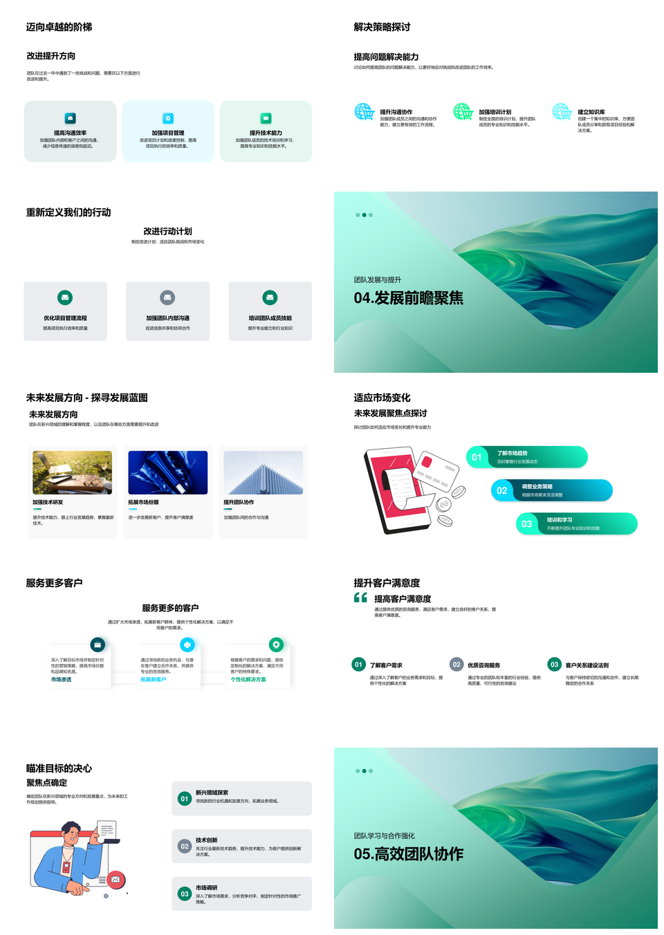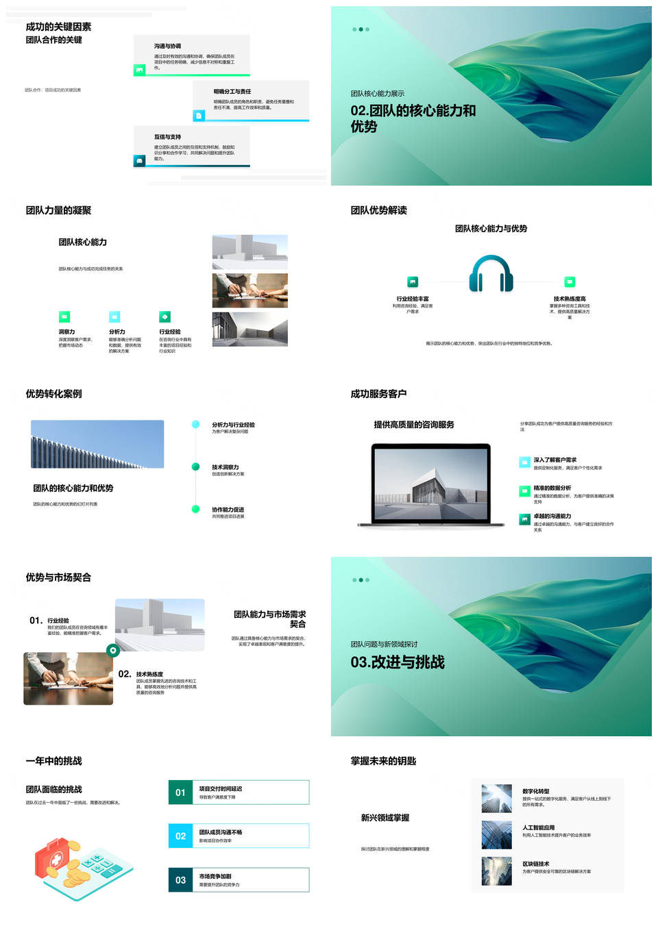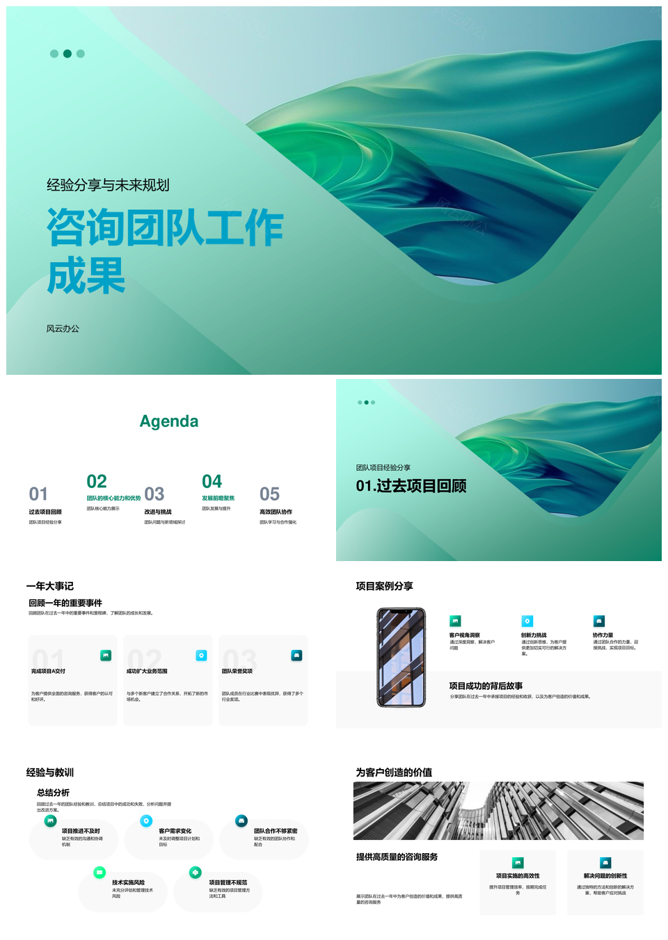 这是一张咨询团队成果经验分享未来规划项目核心优势客户满意PPT模板,包含咨询团队、成果、经验、分享、未来规划、项目、核心优势、客户满意等主题内容,也可用作咨询团队成果经验分享未来规划、成果经验分享未来规划项目、经验分享未来规划项目核心优势、未来规划项目核心优势客户满意、咨询团队成果经验分享、成果经验分享未来规划、经验分享未来规划项目、未来规划项目核心优势、项目核心优势客户满意、咨询团队成果、成果经验分享、经验分享未来规划、未来规划项目、项目核心优势、核心优势客户满意等PPT场景使用。 风云办公提供的咨询团队成果经验分享未来规划项目核心优势客户满意PPT模板,下载格式为pptx,一共33页,作品中文字及图均可以修改和编辑,图片更改请在作品中右键图片并更换,文字修改请直接点击文字进行修改。