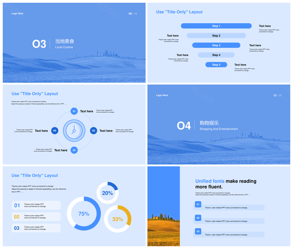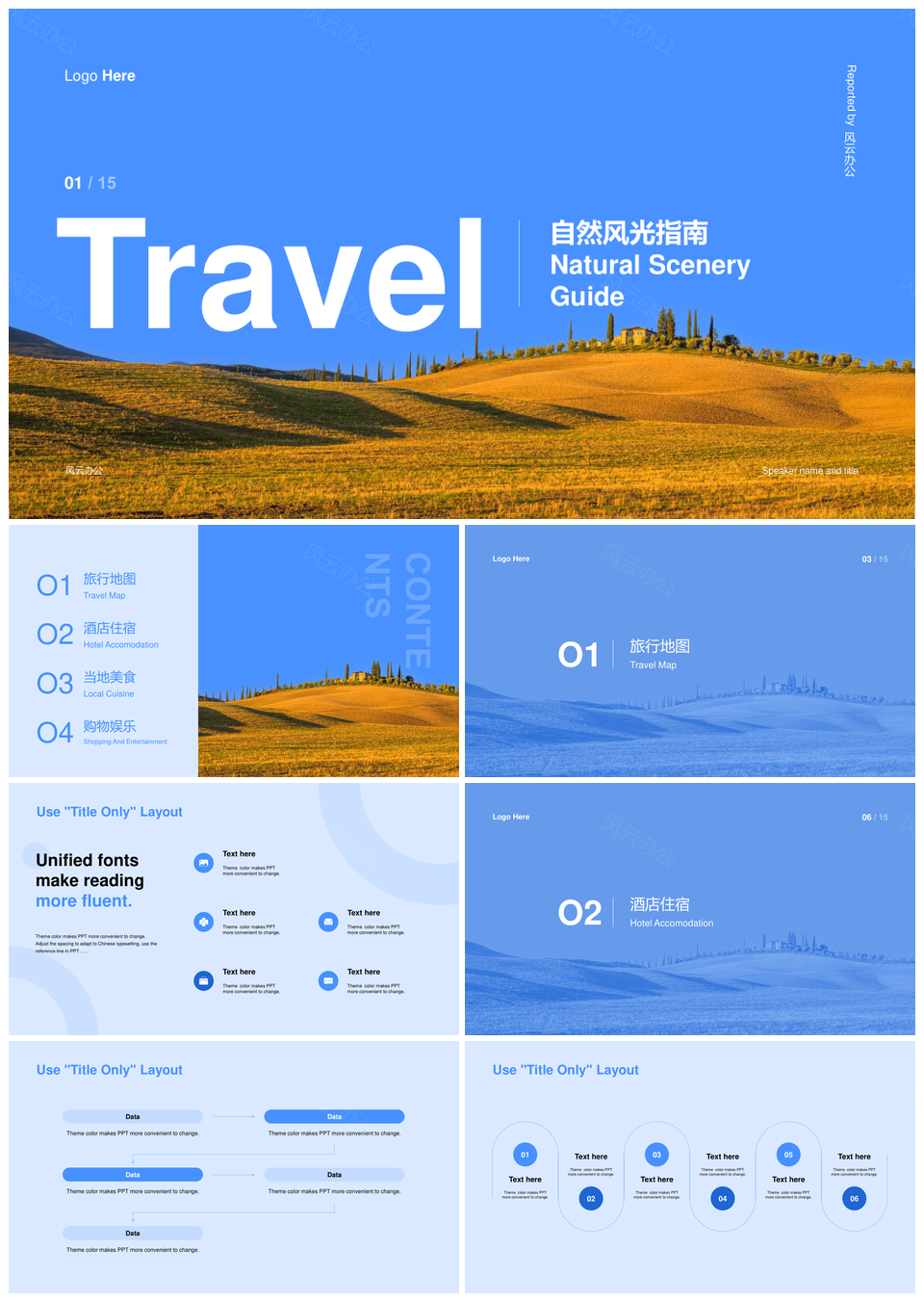 风云办公提供的蓝金麦田商务旅行市场营销案例PPT模板,下载格式为pptx,一共14页,作品中文字及图均可以修改和编辑,图片更改请在作品中右键图片并更换,文字修改请直接点击文字进行修改。