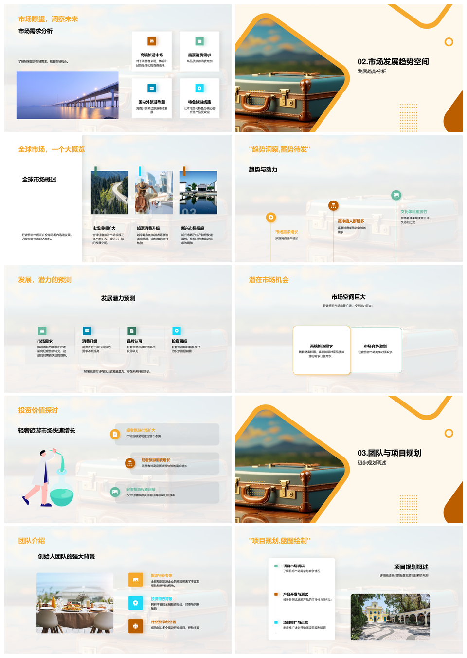 风云办公提供的轻奢旅游市场趋势投资者创业路演解析PPT模板,下载格式为pptx,一共33页,作品中文字及图均可以修改和编辑,图片更改请在作品中右键图片并更换,文字修改请直接点击文字进行修改。