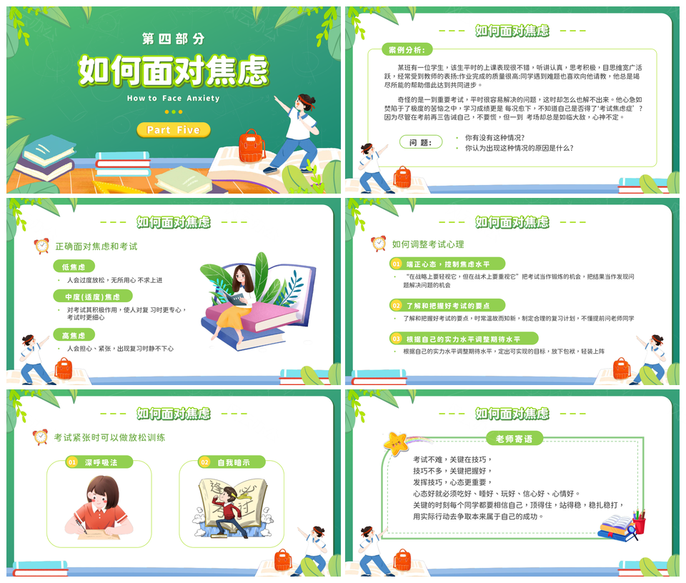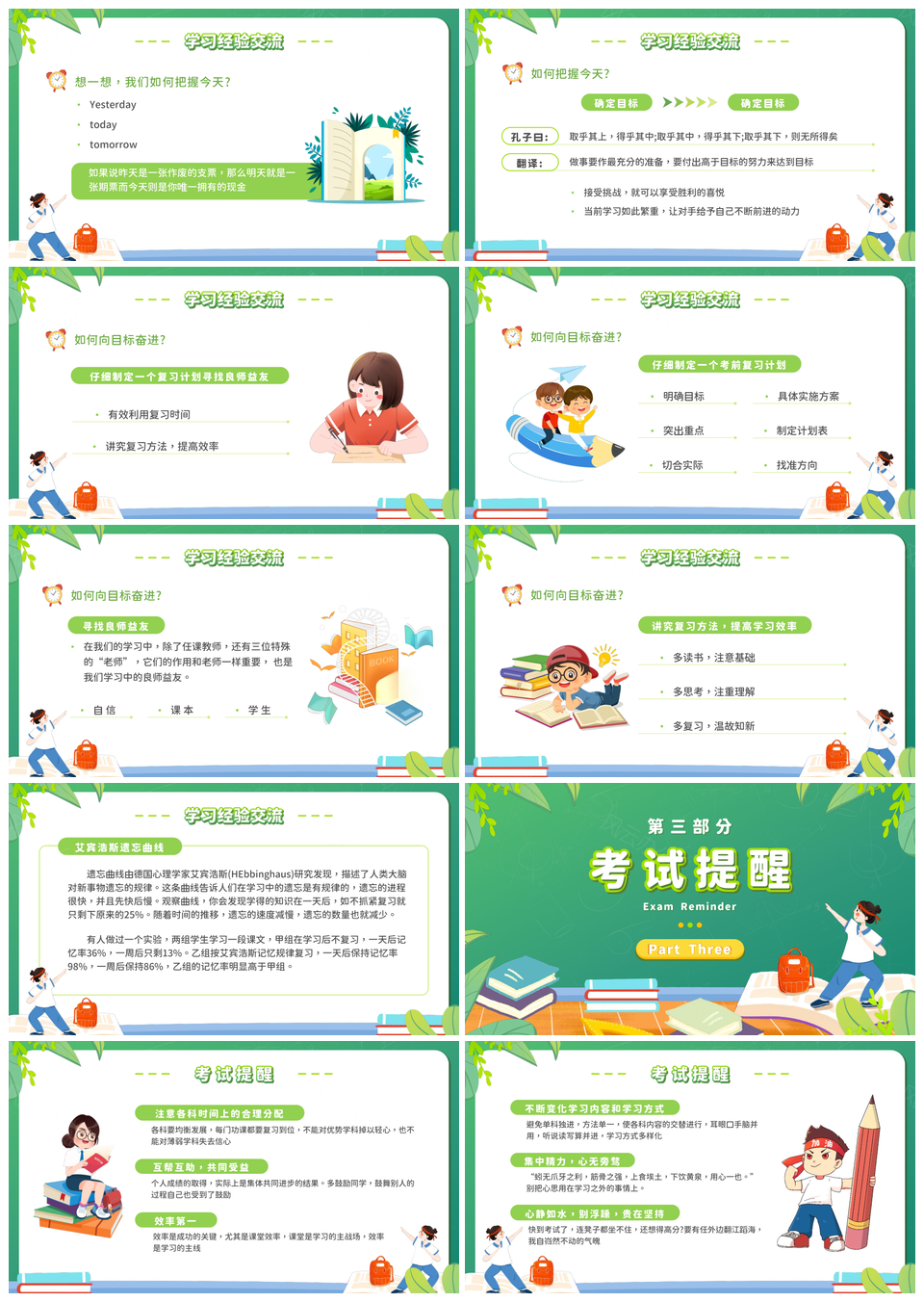 绿色月考季考期中期末总结考试班会主题班会课件PPT模板