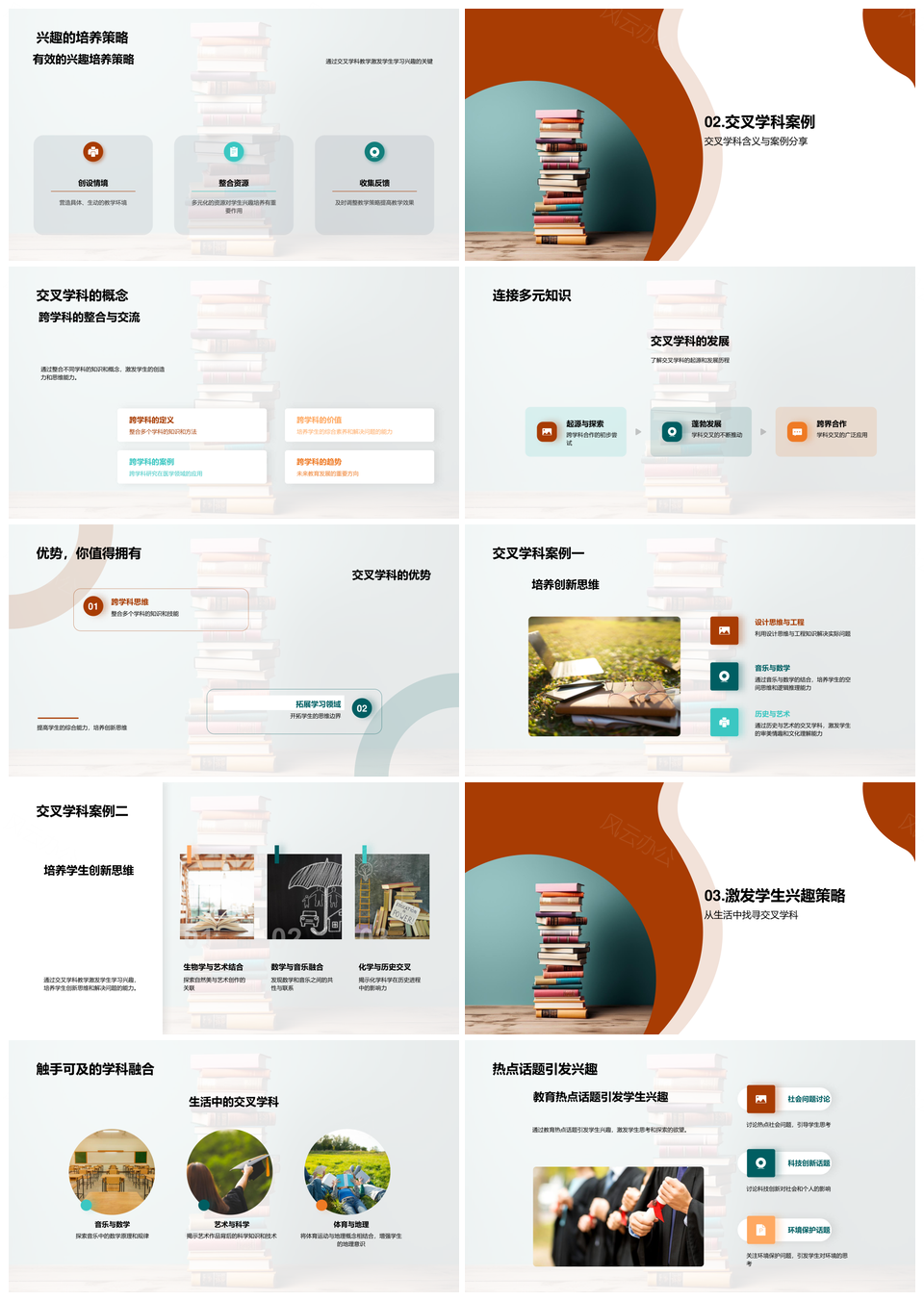 风云办公提供的交叉学科教学策略提升学生兴趣与成效PPT模板,下载格式为pptx,一共33页,作品中文字及图均可以修改和编辑,图片更改请在作品中右键图片并更换,文字修改请直接点击文字进行修改。