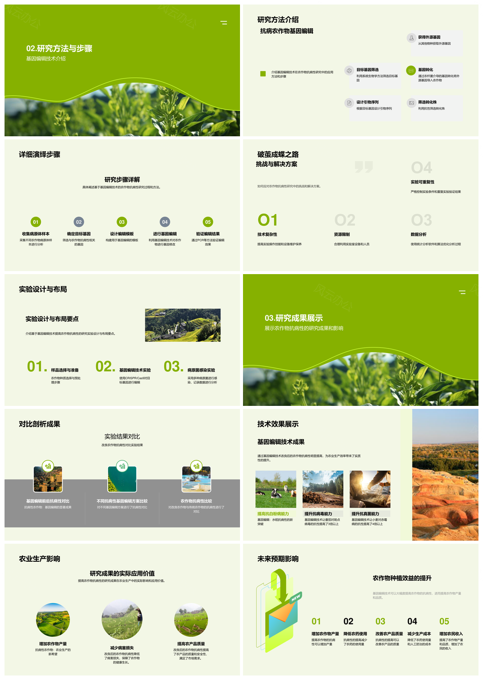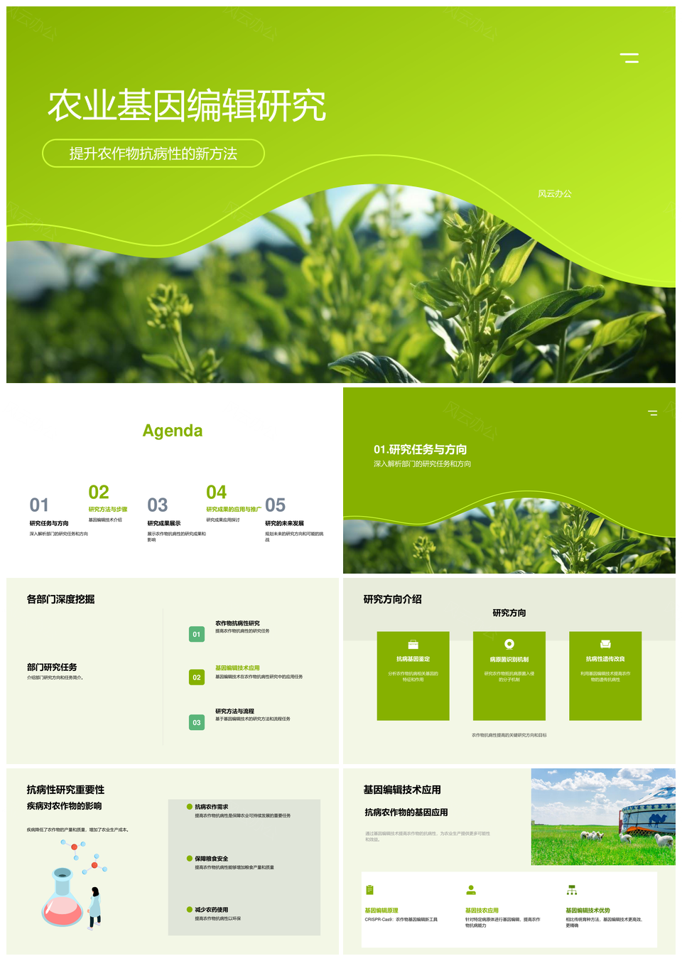 这是一张农业基因编辑技术提升农作物抗病性研究步骤与效果PPT模板,包含农业、基因编辑技术、提升、农作物、抗病性、研究步骤、效果等主题内容,也可用作农业基因编辑技术提升农作物、基因编辑技术提升农作物抗病性、农作物抗病性研究步骤效果、基因编辑技术研究步骤效果、农业基因编辑技术研究步骤、农业基因编辑技术提升抗病性、提升农作物抗病性研究步骤、基因编辑技术农作物抗病性、提升抗病性研究步骤、抗病性研究步骤效果、农业基因编辑技术效果、研究步骤效果提升、农作物抗病性提升、基因编辑技术提升研究步骤、抗病性研究步骤提升等PPT场景使用。 风云办公提供的农业基因编辑技术提升农作物抗病性研究步骤与效果PPT模板,下载格式为pptx,一共28页,作品中文字及图均可以修改和编辑,图片更改请在作品中右键图片并更换,文字修改请直接点击文字进行修改。