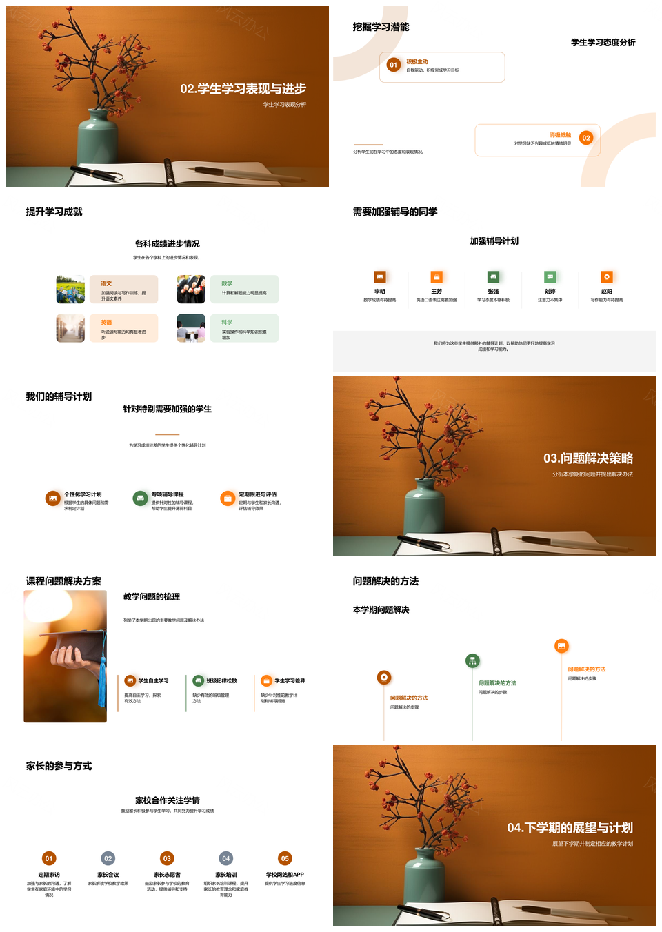 学期学习总结成绩分析问题解决成长计划PPT模板