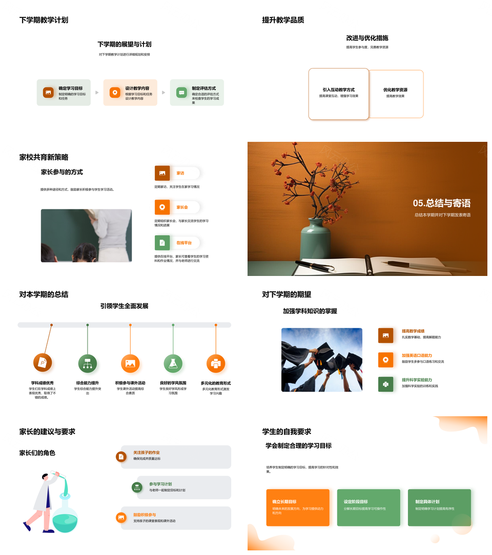 学期成绩总结规划学习目标成果班级时间效率科目团队PPT模板
