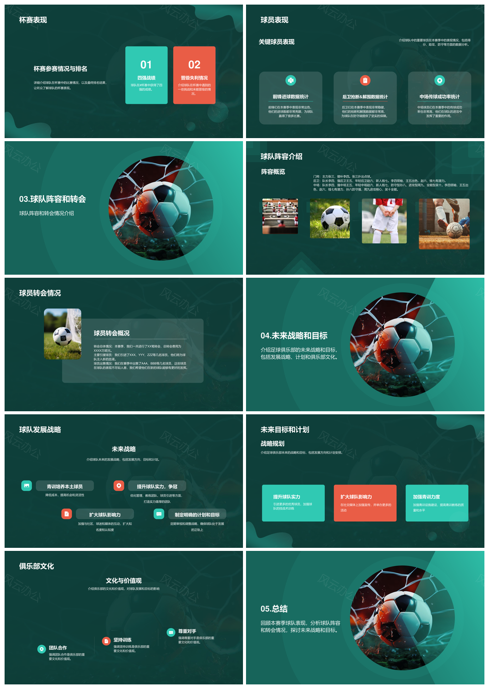 这是一张绿色商务现代足球俱乐部赛季总结发布会PPT模板,包含绿色、商务、现代、足球、俱乐部、赛季、总结、发布会等主题内容,也可用作绿色商务现代足球俱乐部赛季总结发布会、绿色商务现代足球俱乐部、商务现代足球俱乐部赛季、现代足球俱乐部赛季总结、足球俱乐部赛季总结发布会、绿色商务现代足球、商务现代足球俱乐部、现代足球俱乐部赛季、足球俱乐部赛季总结、赛季总结发布会、绿色商务现代、商务现代足球、现代足球俱乐部、足球俱乐部赛季、俱乐部赛季总结等PPT场景使用。 风云办公提供的绿色商务现代足球俱乐部赛季总结发布会PPT模板,下载格式为pptx,一共22页,作品中文字及图均可以修改和编辑,图片更改请在作品中右键图片并更换,文字修改请直接点击文字进行修改。
