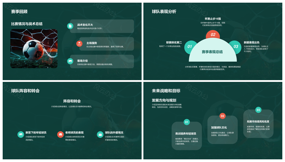绿色商务现代足球俱乐部赛季总结发布会PPT模板推荐