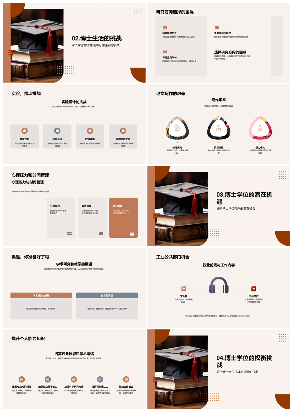 风云办公提供的博士之路实验挑战论文艰辛终戴毕业帽PPT模板,下载格式为pptx,一共26页,作品中文字及图均可以修改和编辑,图片更改请在作品中右键图片并更换,文字修改请直接点击文字进行修改。