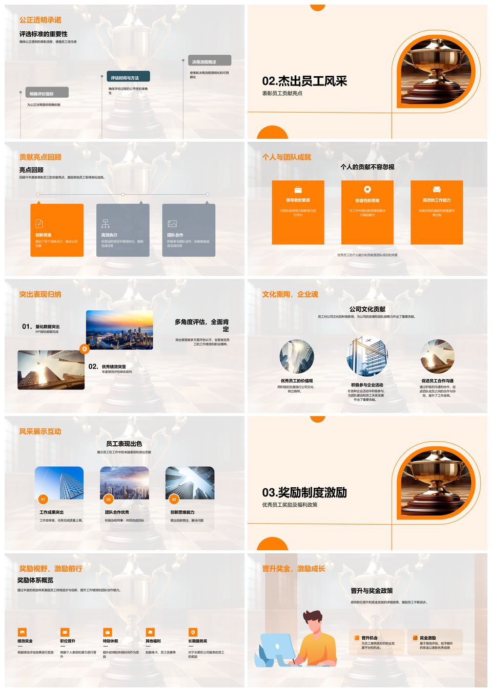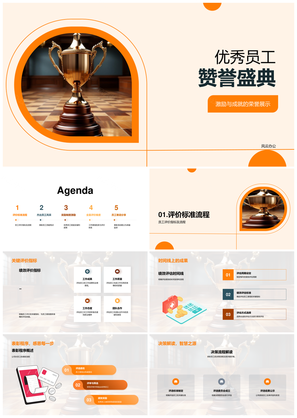 风云办公提供的优秀员工绩效贡献公正表彰盛典PPT模板,下载格式为pptx,一共33页,作品中文字及图均可以修改和编辑,图片更改请在作品中右键图片并更换,文字修改请直接点击文字进行修改。