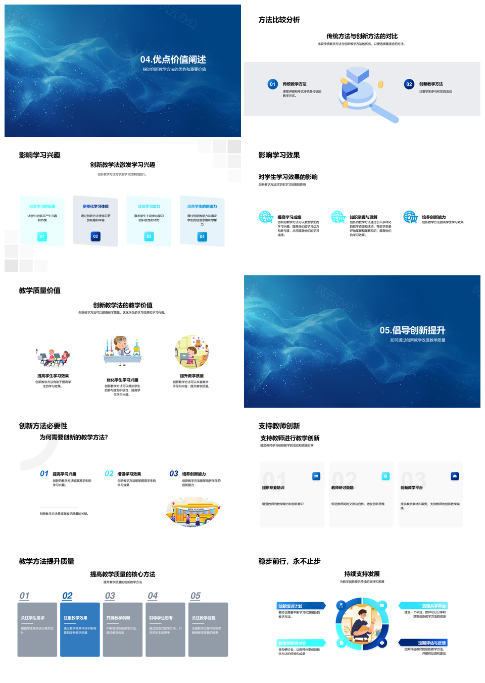 这是一张教学创新方法实施效果对比教师反馈报告PPT模板,包含教学、创新方法、实施效果、对比、教师、反馈、报告等主题内容,也可用作教学创新方法实施效果对比、创新方法实施效果对比教师、方法实施效果对比教师反馈、实施效果对比教师反馈报告、教学创新方法实施效果、教学创新方法实施、创新方法实施效果、方法实施效果对比、实施效果对比教师、效果对比教师反馈、对比教师反馈报告、教学创新方法、教学实施效果对比、创新实施效果对比、教师反馈报告等PPT场景使用。 风云办公提供的教学创新方法实施效果对比教师反馈报告PPT模板,下载格式为pptx,一共28页,作品中文字及图均可以修改和编辑,图片更改请在作品中右键图片并更换,文字修改请直接点击文字进行修改。