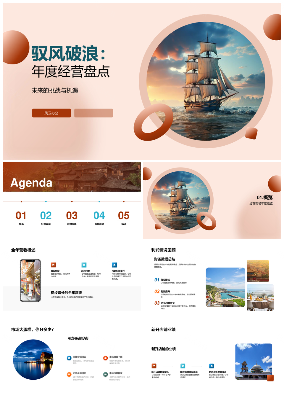驭风破浪年度经营盘点营收利润市场覆盖产品优化PPT模板推荐