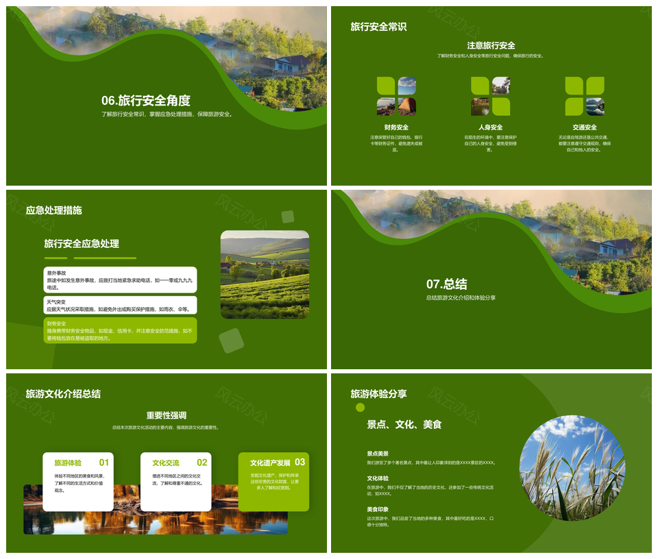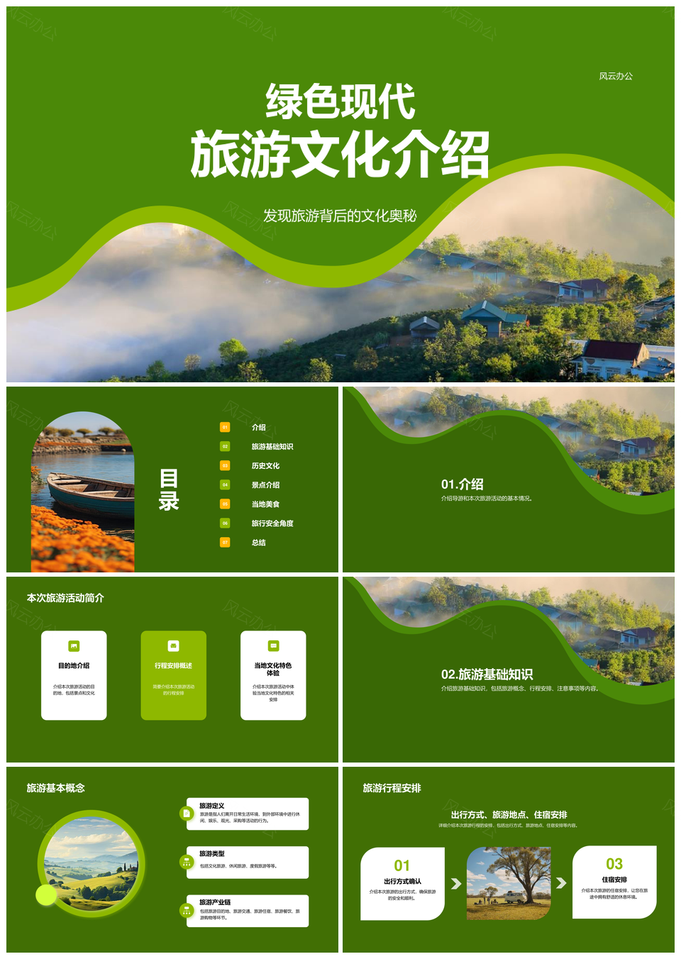 绿色商务现代度假旅游风景文化图集PPT模板推荐