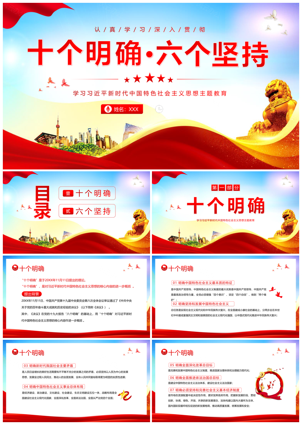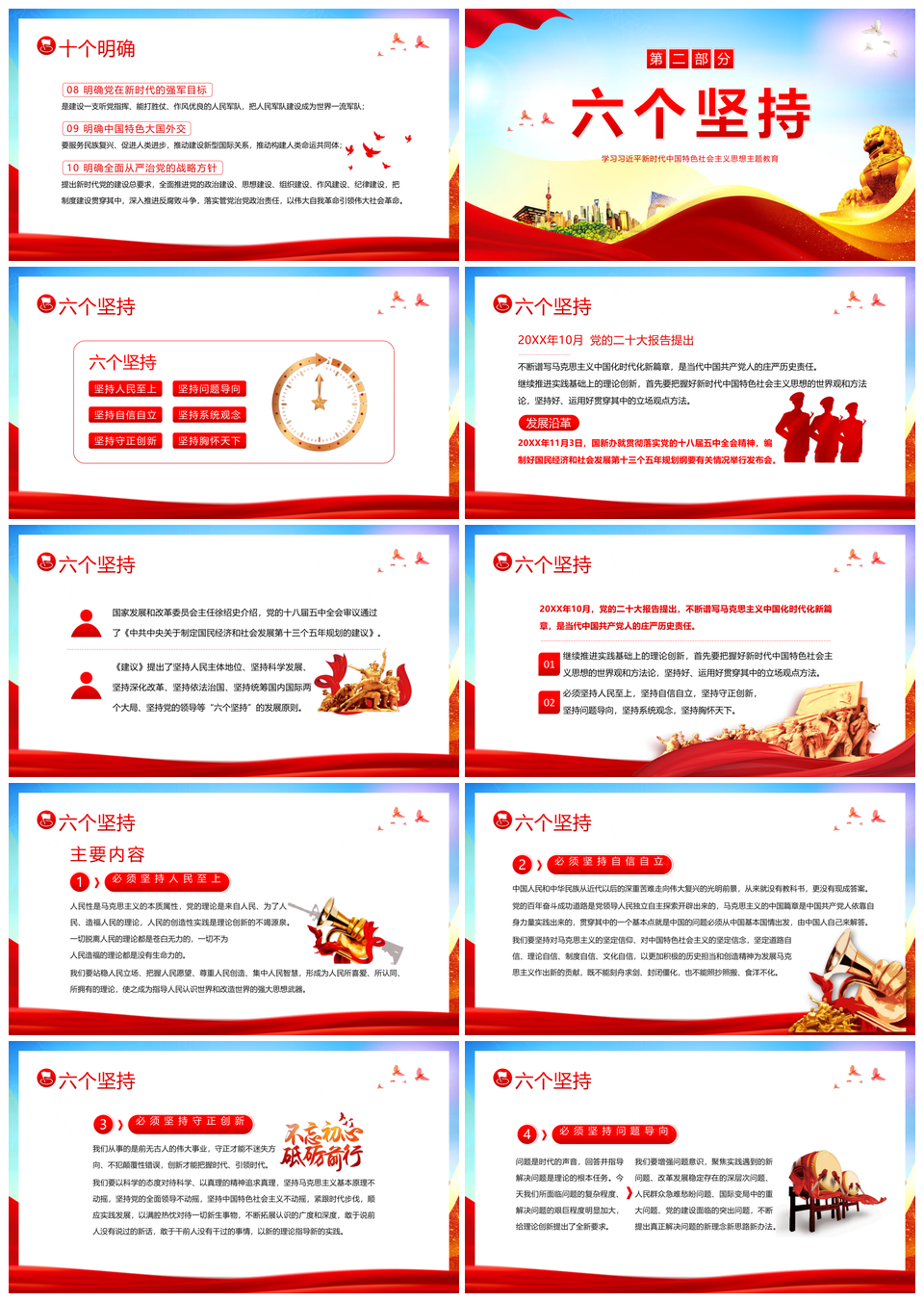 2023十个明确六坚持二十大精神主题教育党建党课PPT模板推荐
