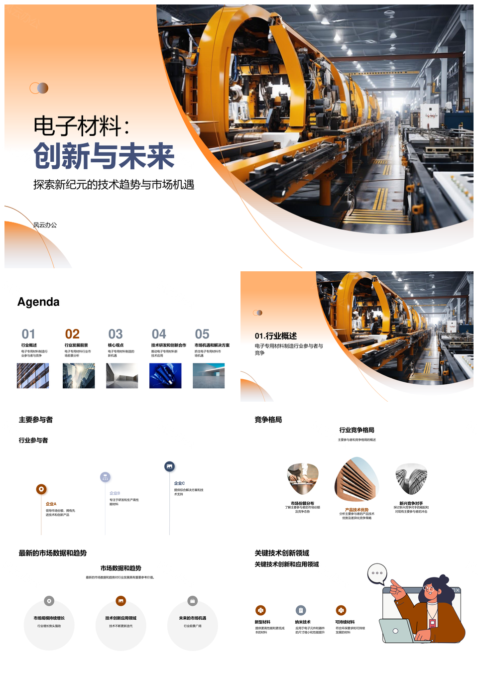 风云办公提供的电子材料技术创新趋势与竞争格局分析PPT模板,下载格式为pptx,一共25页,作品中文字及图均可以修改和编辑,图片更改请在作品中右键图片并更换,文字修改请直接点击文字进行修改。