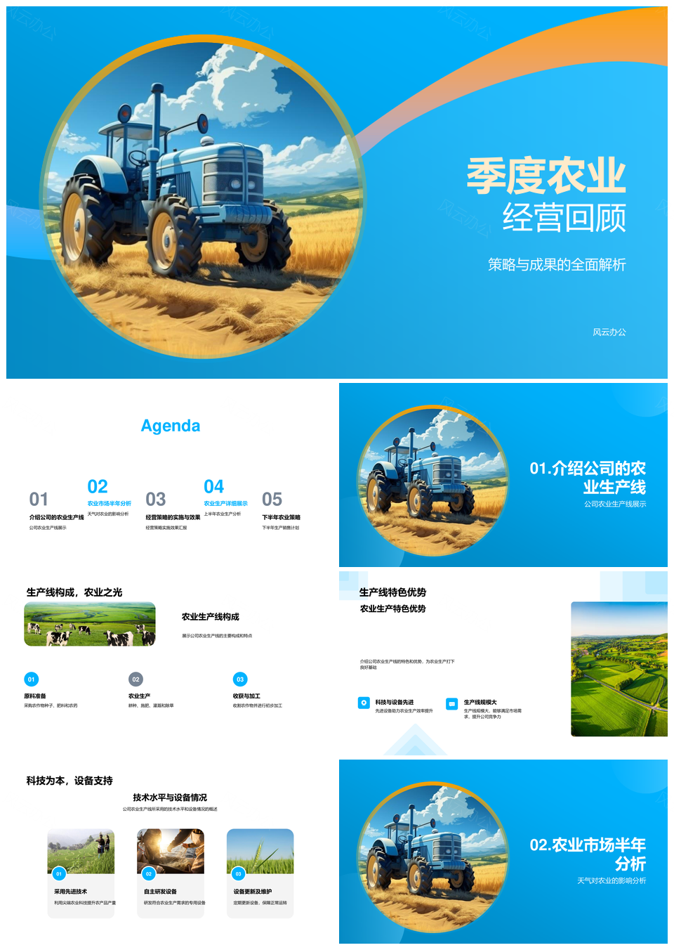 风云办公提供的麦田农业经营技术市场季度分析PPT模板,下载格式为pptx,一共23页,作品中文字及图均可以修改和编辑,图片更改请在作品中右键图片并更换,文字修改请直接点击文字进行修改。