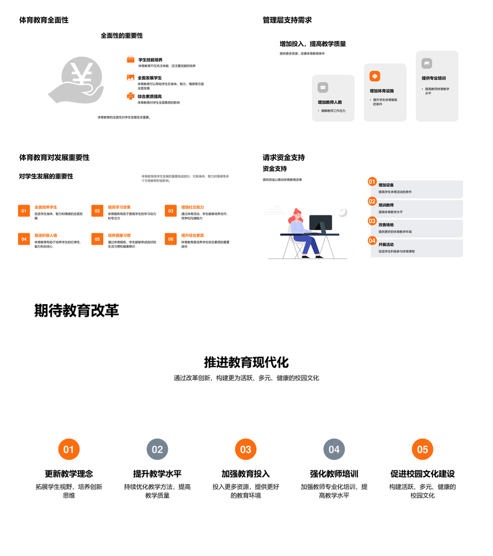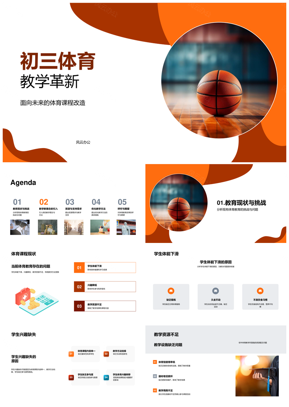 这是一张初三体育课改破资源局限激全员运动热情PPT模板,包含初三、体育课、破、资源局限、激、全员、运动热情等主题内容,也可用作初三体育课改资源局限、初三体育课改全员运动、体育课改资源局限全员、课改资源局限全员运动、资源局限全员运动热情、初三体育课改资源、体育课改全员运动、课改资源局限全员、初三全员运动热情、资源局限全员运动、课改资源局限、全员运动热情、初三体育课改、体育课改资源、全员运动等PPT场景使用。 风云办公提供的初三体育课改破资源局限激全员运动热情PPT模板,下载格式为pptx,一共33页,作品中文字及图均可以修改和编辑,图片更改请在作品中右键图片并更换,文字修改请直接点击文字进行修改。