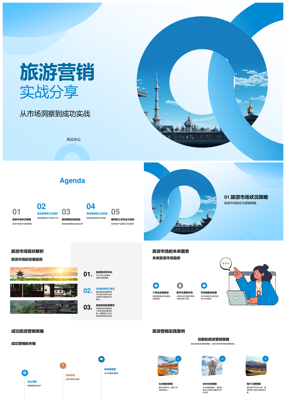 风云办公提供的旅游营销实战市场洞察成功案例PPT模板,下载格式为pptx,一共33页,作品中文字及图均可以修改和编辑,图片更改请在作品中右键图片并更换,文字修改请直接点击文字进行修改。