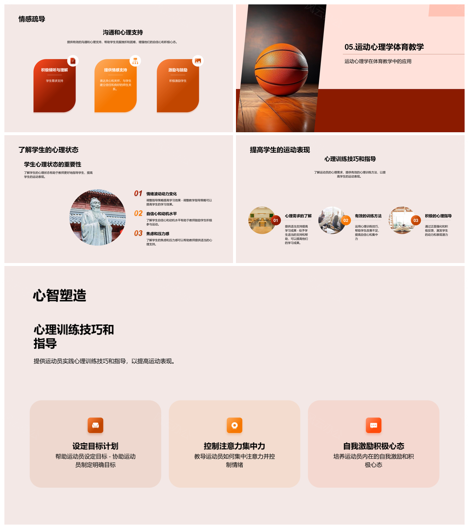这是一张2025高中篮球运动心理因素教学与认知情感发展PPT模板,包含2025、高中、篮球运动、心理因素、教学、认知、情感发展等主题内容,也可用作2025高中篮球运动心理因素、2025高中篮球运动教学、高中篮球运动心理因素教学、篮球运动心理因素教学认知情感发展、2025高中心理因素认知情感发展、2025篮球运动心理因素教学、高中心理因素教学认知情感发展、2025高中心理因素教学、2025高中篮球运动认知情感发展、2025高中篮球运动、高中篮球运动教学、篮球运动心理因素教学、高中心理因素教学、2025心理因素教学、篮球运动教学认知情感发展等PPT场景使用。 风云办公提供的2025高中篮球运动心理因素教学与认知情感发展PPT模板,下载格式为pptx,一共23页,作品中文字及图均可以修改和编辑,图片更改请在作品中右键图片并更换,文字修改请直接点击文字进行修改。