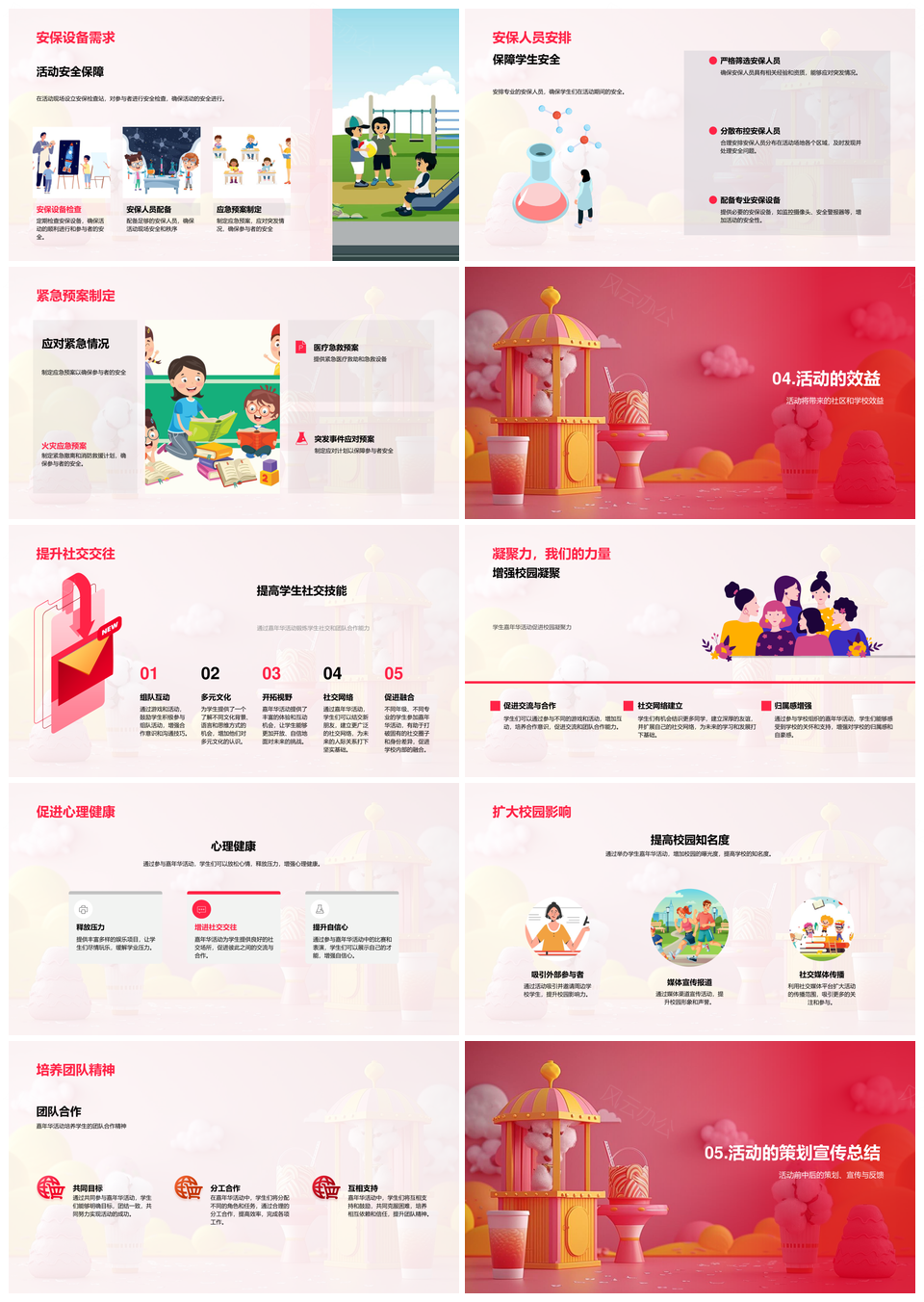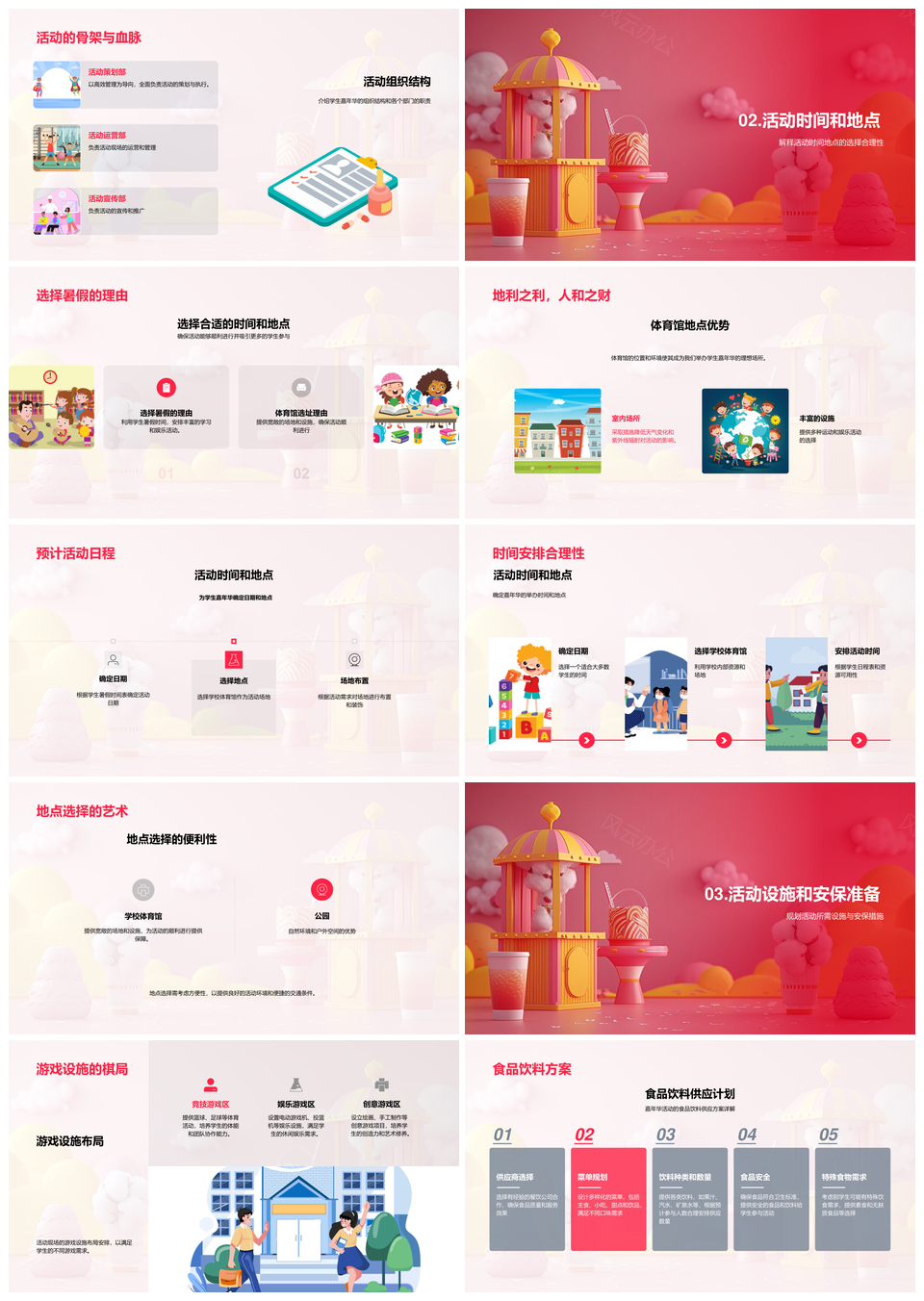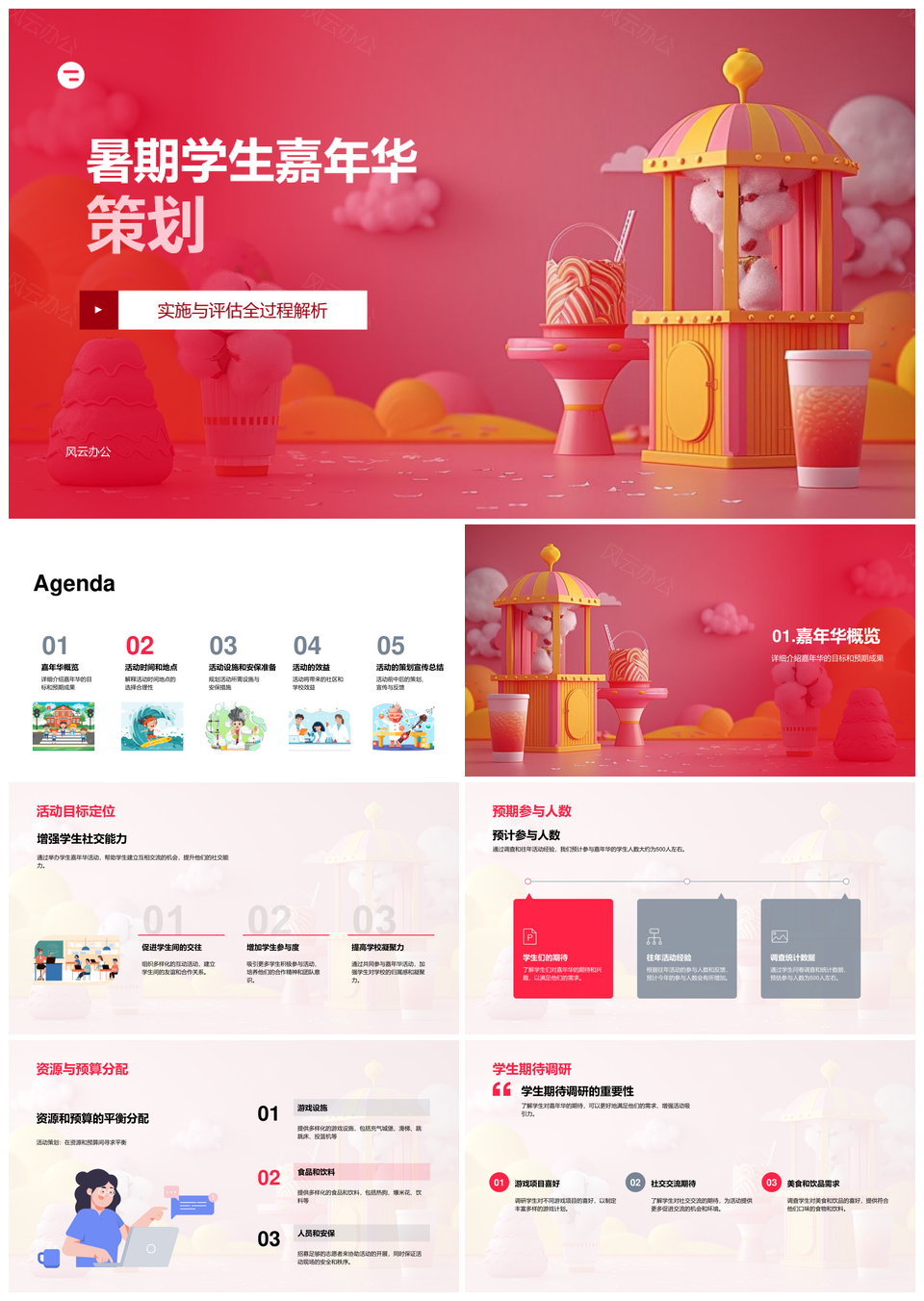 这是一张暑期学生嘉年华活动策划学校凝聚力社交体育馆游戏设施资源预算安保PPT模板,包含暑期、学生、嘉年华、活动、策划、学校、凝聚力、社交、体育馆、游戏、设施、资源、预算、安保等主题内容,也可用作暑期学生嘉年华活动策划、学生嘉年华活动策划学校、嘉年华活动策划学校凝聚力、活动策划学校凝聚力社交、策划学校凝聚力社交体育馆、学校凝聚力社交体育馆游戏、凝聚力社交体育馆游戏设施、社交体育馆游戏设施资源、体育馆游戏设施资源预算、游戏设施资源预算安保、暑期学生嘉年华活动、学生嘉年华活动策划、嘉年华活动策划学校、活动策划学校凝聚力、策划学校凝聚力社交等PPT场景使用。 风云办公提供的暑期学生嘉年华活动策划学校凝聚力社交体育馆游戏设施资源预算安保PPT模板,下载格式为pptx,一共33页,作品中文字及图均可以修改和编辑,图片更改请在作品中右键图片并更换,文字修改请直接点击文字进行修改。