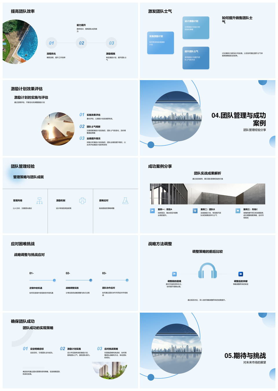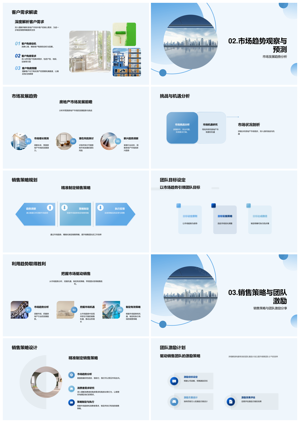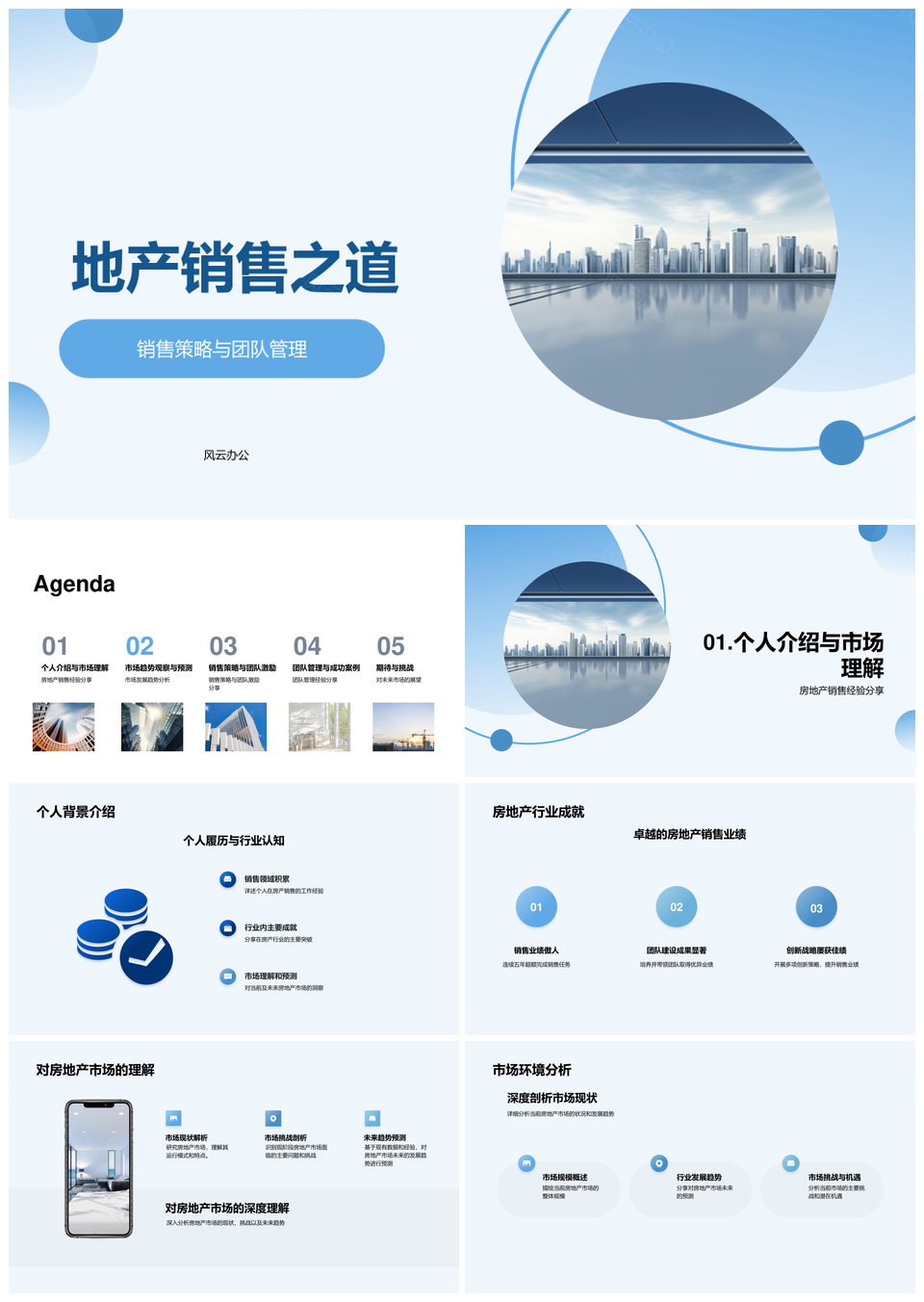 风云办公提供的地产销售团队管理策略与市场趋势PPT模板,下载格式为pptx,一共33页,作品中文字及图均可以修改和编辑,图片更改请在作品中右键图片并更换,文字修改请直接点击文字进行修改。
