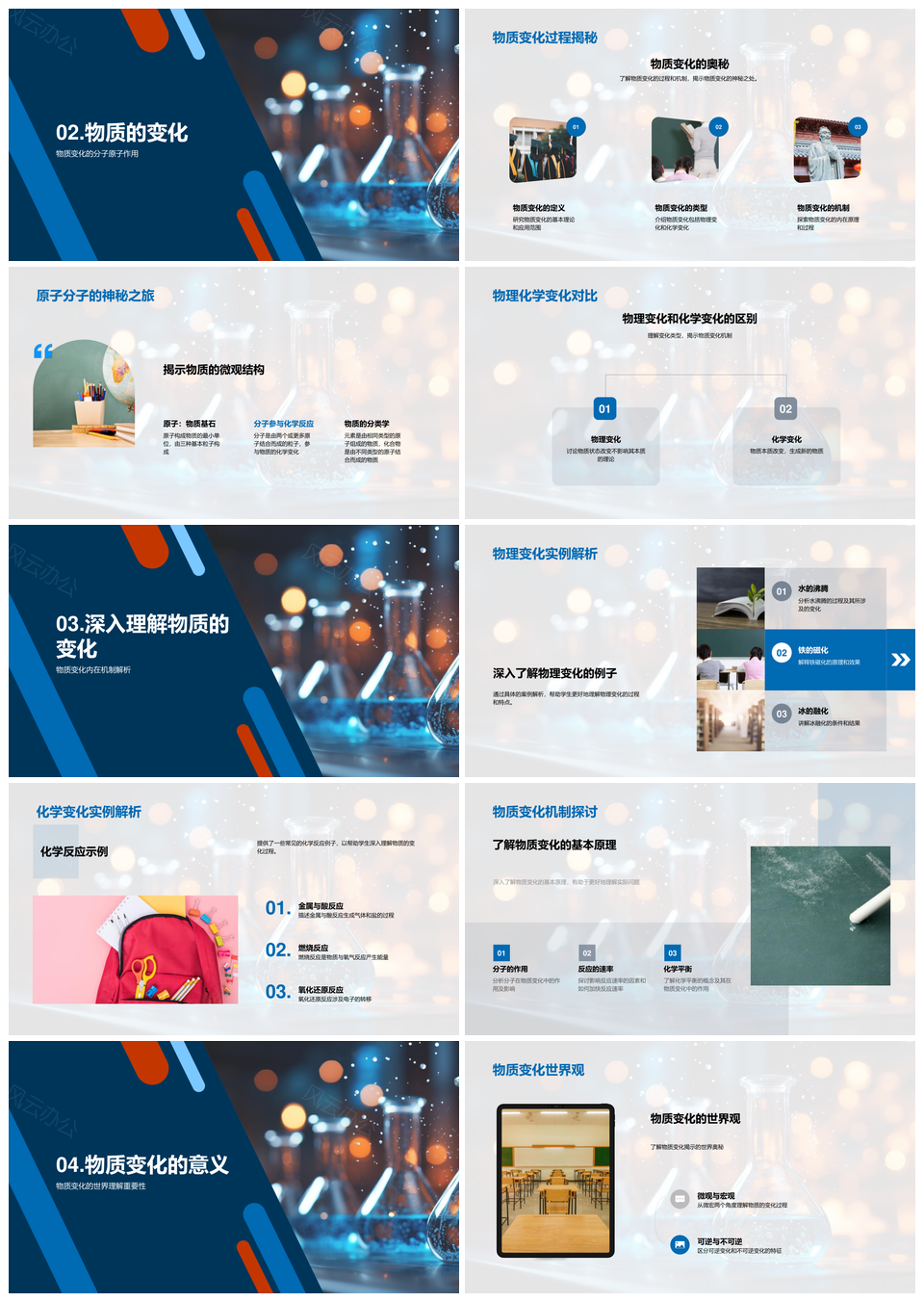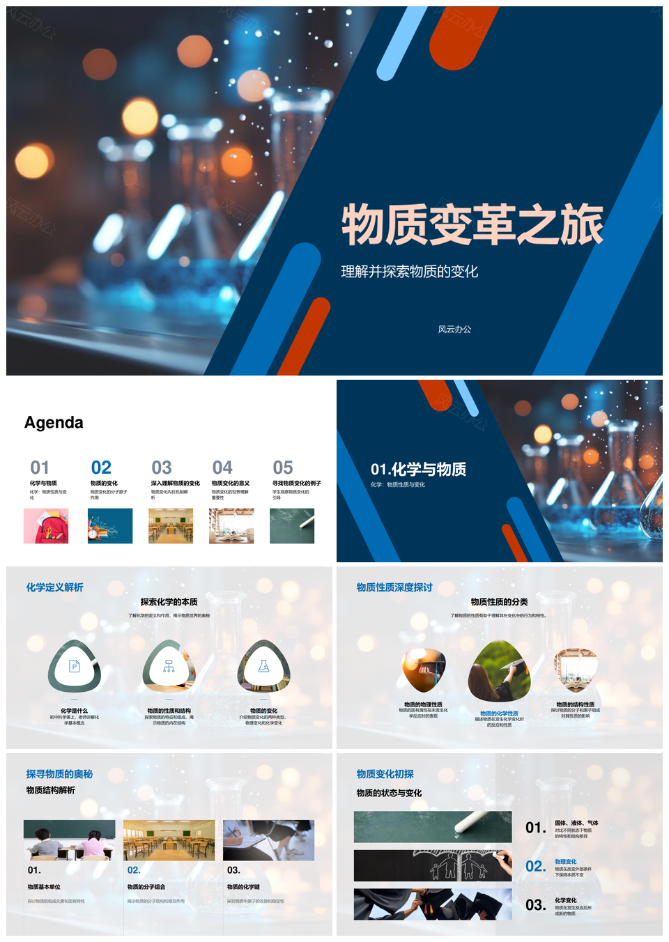 风云办公提供的物质结构性质化变物变探秘PPT模板,下载格式为pptx,一共24页,作品中文字及图均可以修改和编辑,图片更改请在作品中右键图片并更换,文字修改请直接点击文字进行修改。