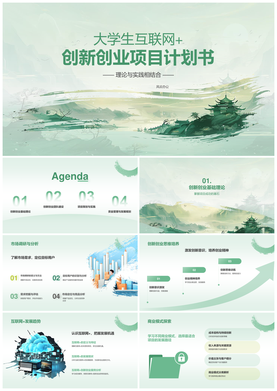 大学生互联网创新创业教育实践理论计划书PPT模板