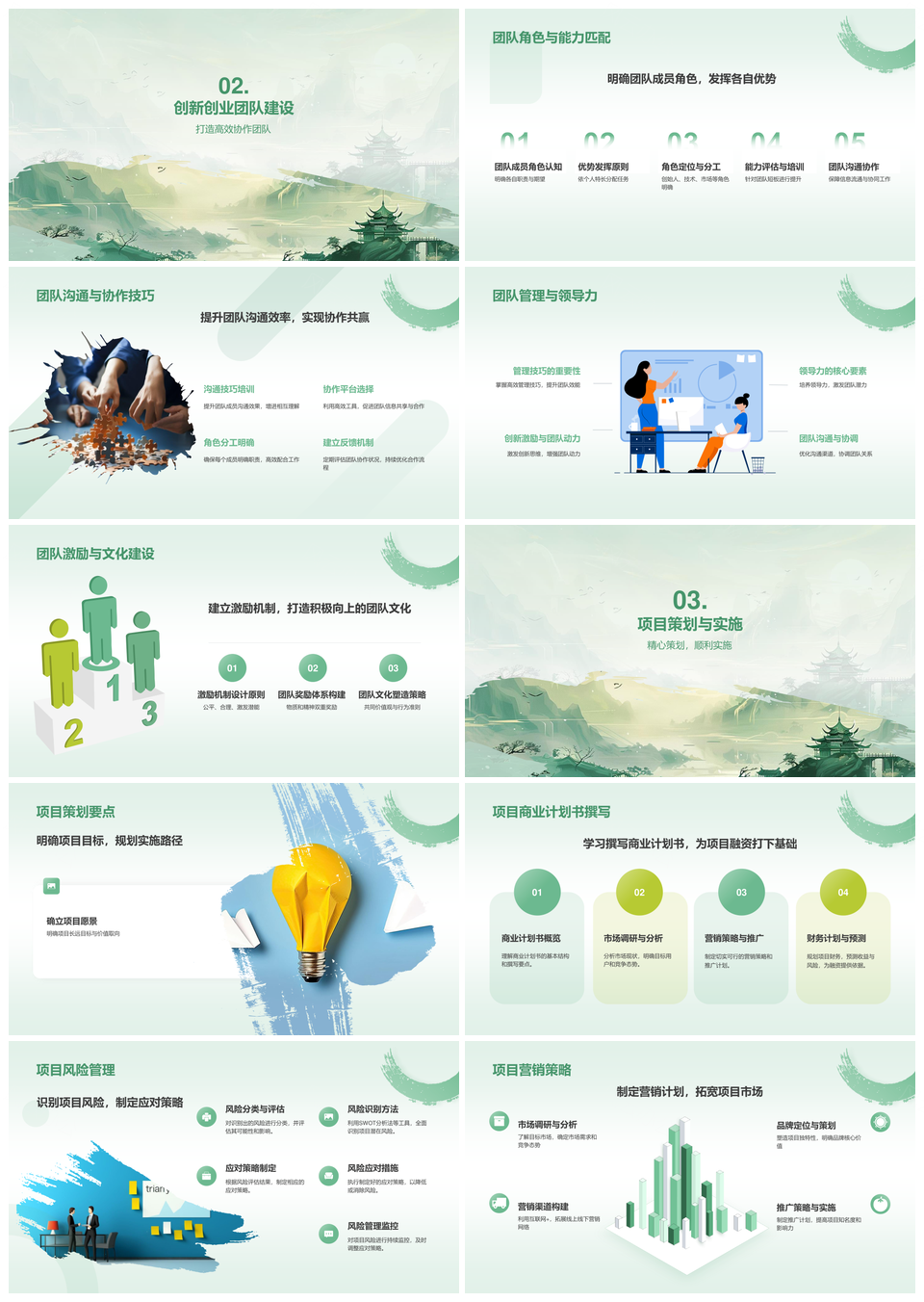 这是一张大学生互联网创新创业教育项目策划团队建设计划书PPT模板,包含大学生、互联网、创新创业、教育项目、策划团队、建设、计划书等主题内容,也可用作大学生互联网创新创业教育、互联网创新创业教育项目策划、创新创业教育项目策划团队建设、教育项目策划团队建设计划书、大学生互联网创新创业、互联网创新创业教育、创新创业教育项目策划、教育项目策划团队建设、项目策划团队建设计划书、大学生互联网、互联网创新创业、创新创业教育、教育项目策划、项目策划团队建设、团队建设计划书等PPT场景使用。 风云办公提供的大学生互联网创新创业教育项目策划团队建设计划书PPT模板,下载格式为pptx,一共22页,作品中文字及图均可以修改和编辑,图片更改请在作品中右键图片并更换,文字修改请直接点击文字进行修改。