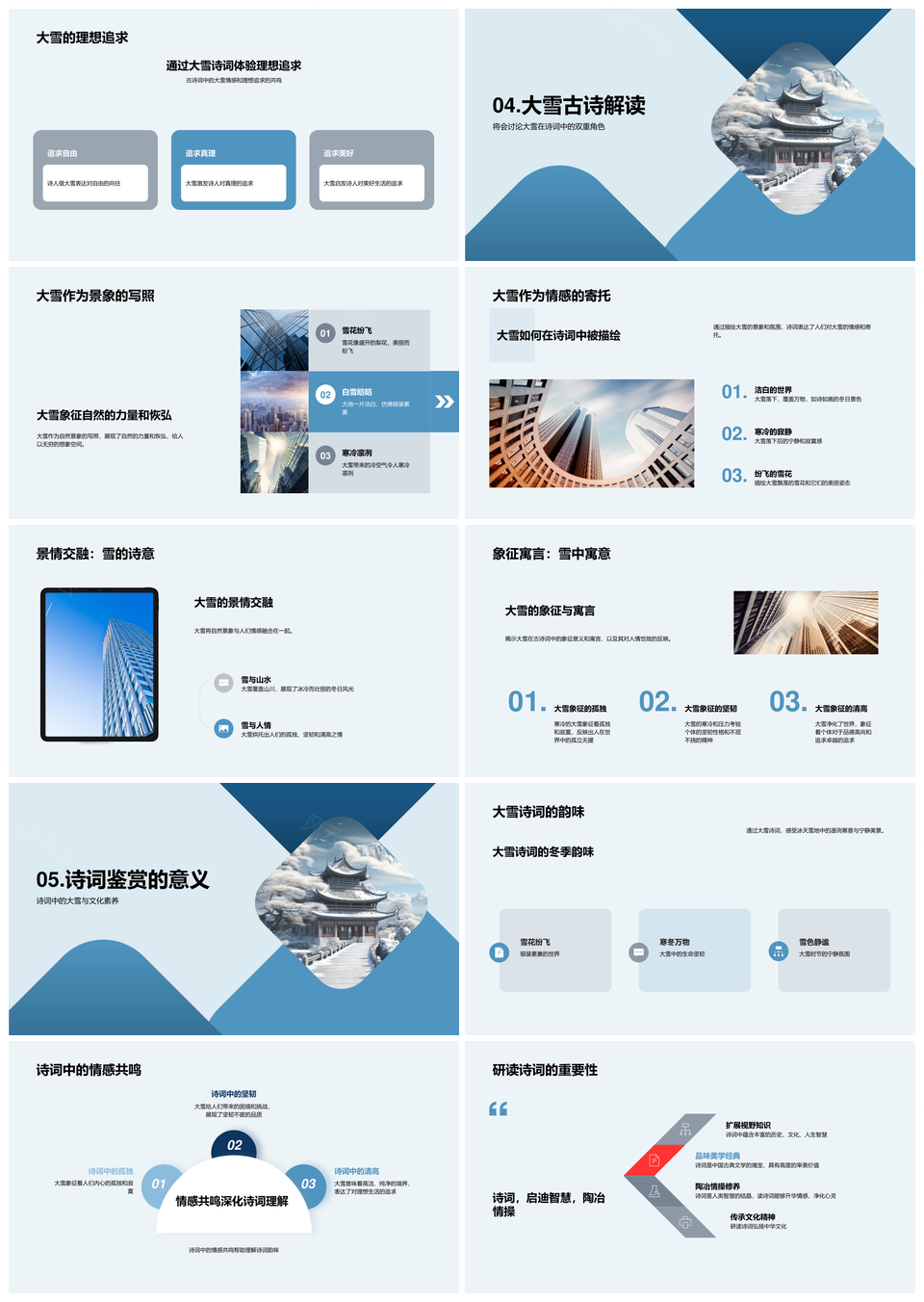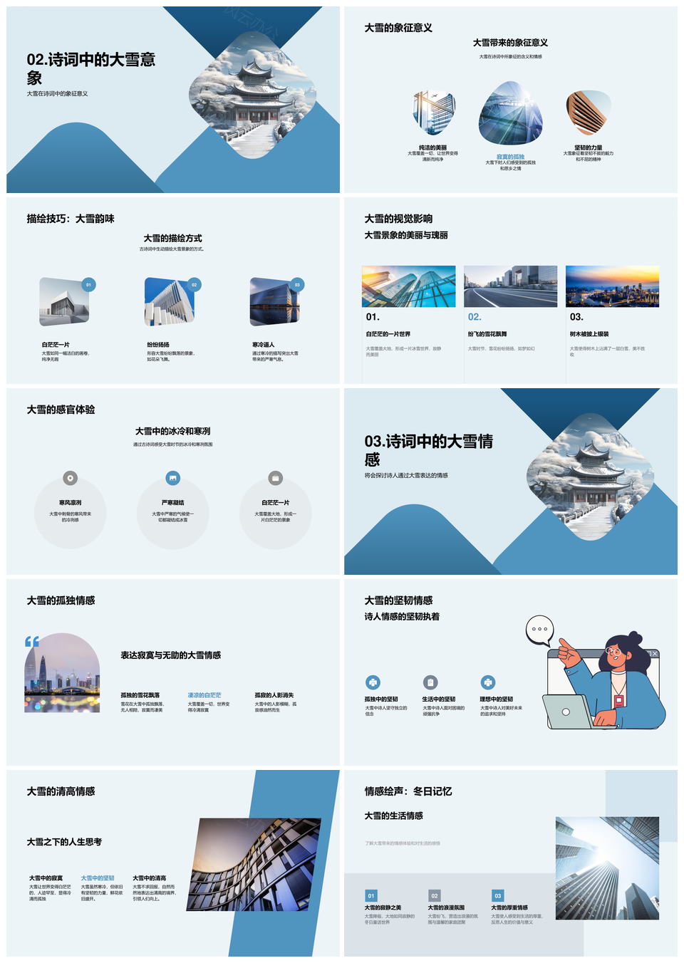 风云办公提供的江雪诗词大雪中的孤独情韵象征PPT模板,下载格式为pptx,一共29页,作品中文字及图均可以修改和编辑,图片更改请在作品中右键图片并更换,文字修改请直接点击文字进行修改。