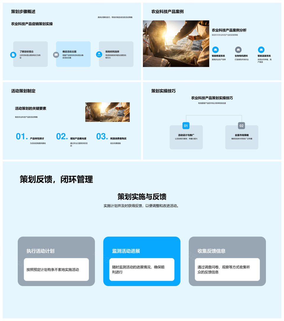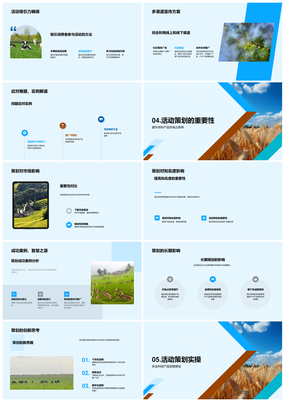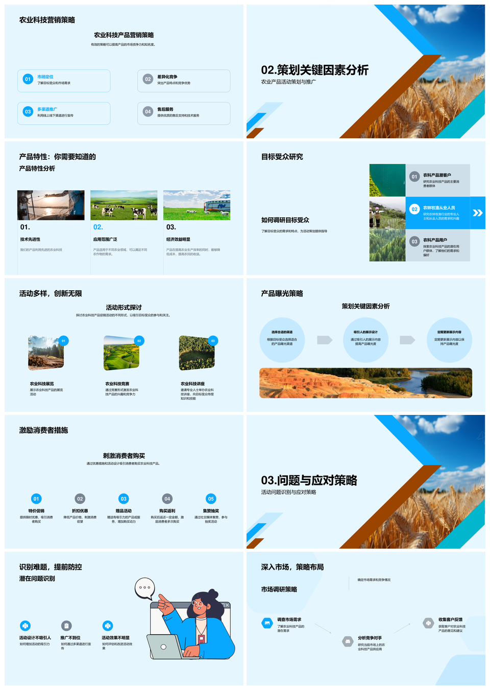 风云办公提供的农业科技产品营销趋势与活动曝光策略PPT模板,下载格式为pptx,一共33页,作品中文字及图均可以修改和编辑,图片更改请在作品中右键图片并更换,文字修改请直接点击文字进行修改。