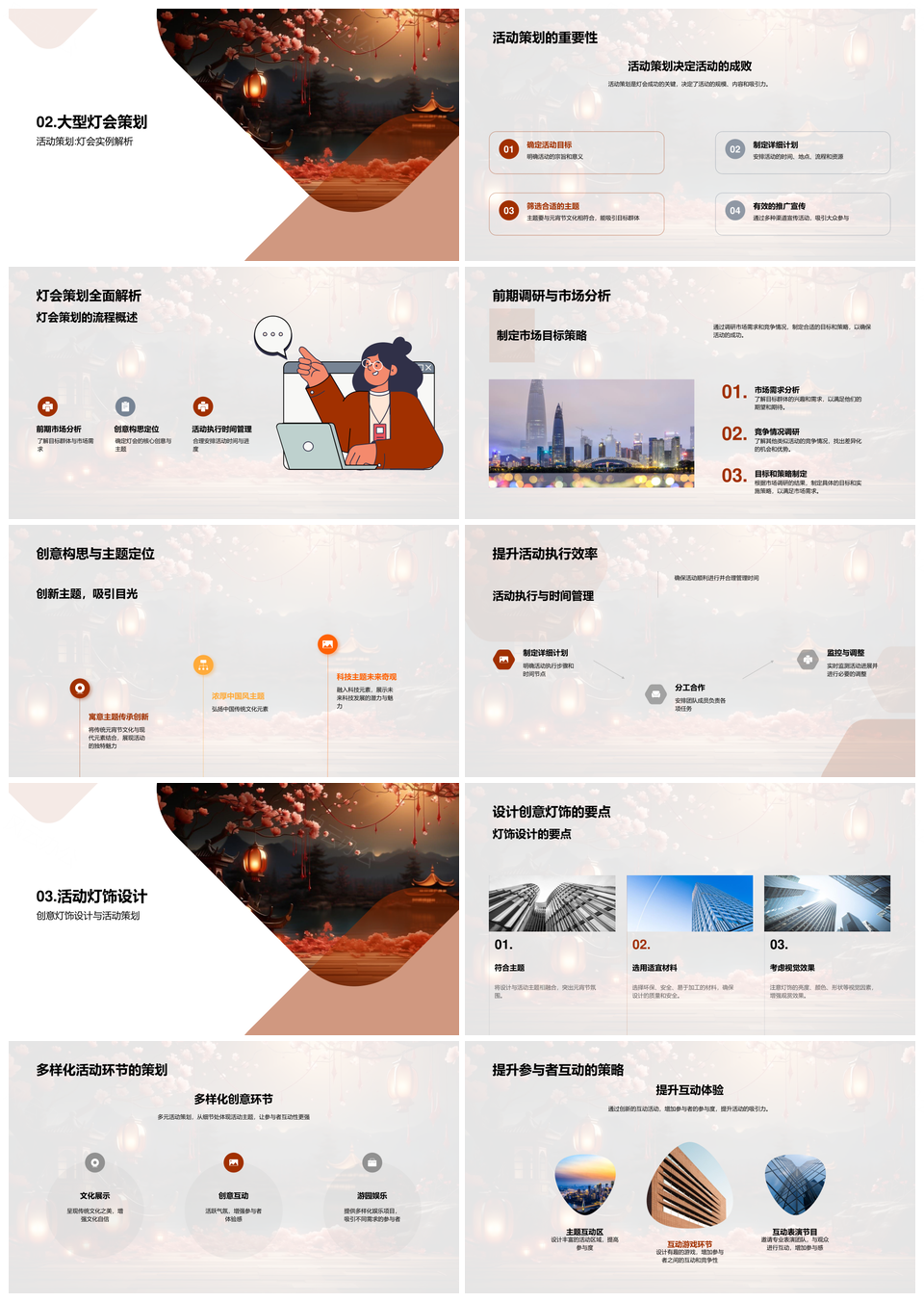 这是一张元宵灯会创意策划灯饰科技互动主题定位PPT模板,包含元宵灯会、创意、策划、灯饰、科技、互动、主题、定位等主题内容,也可用作元宵灯会创意策划、灯饰科技互动主题、科技互动主题定位、创意策划灯饰科技、灯饰科技互动、科技互动主题、互动主题定位、创意策划灯饰、元宵灯会创意、灯会创意策划、元宵灯会、创意策划、灯饰科技、互动主题、主题定位等PPT场景使用。 风云办公提供的元宵灯会创意策划灯饰科技互动主题定位PPT模板,下载格式为pptx,一共34页,作品中文字及图均可以修改和编辑,图片更改请在作品中右键图片并更换,文字修改请直接点击文字进行修改。