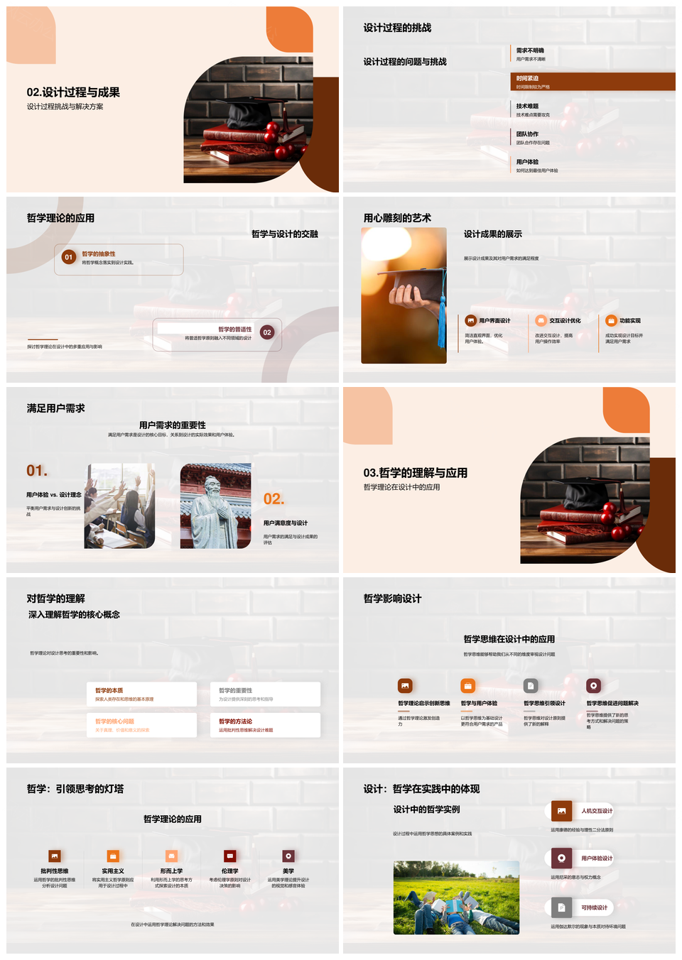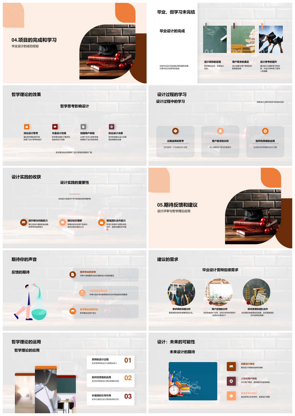 这款职场风PPT模板采用橙红黑经典配色,深邃黑色奠定专业基调,活力橙色提亮视觉层次,暗红色增加沉稳质感,三种色调在极简几何图形中形成巧妙平衡。模块化结构支持快捷调整,可自由重组文字图表位置,所有矢量素材保留分层可编辑性,轻松适配提案汇报、发布会等商务场景。核心设计通过森系线条、肌理叠层与低饱和度蒙版,将复古手绘元素融入现代数字感排版,既呈现学术研究的严谨逻辑,又保持激励人心的视觉温度。职场人士可通过版式框架快速完成方案包装,无需设计基础也能塑造可靠的企业形象。