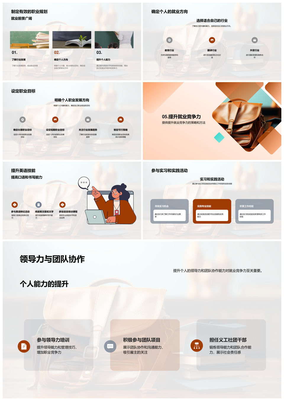 英语专业求职攻略教育翻译外贸方向规划前景PPT模板推荐