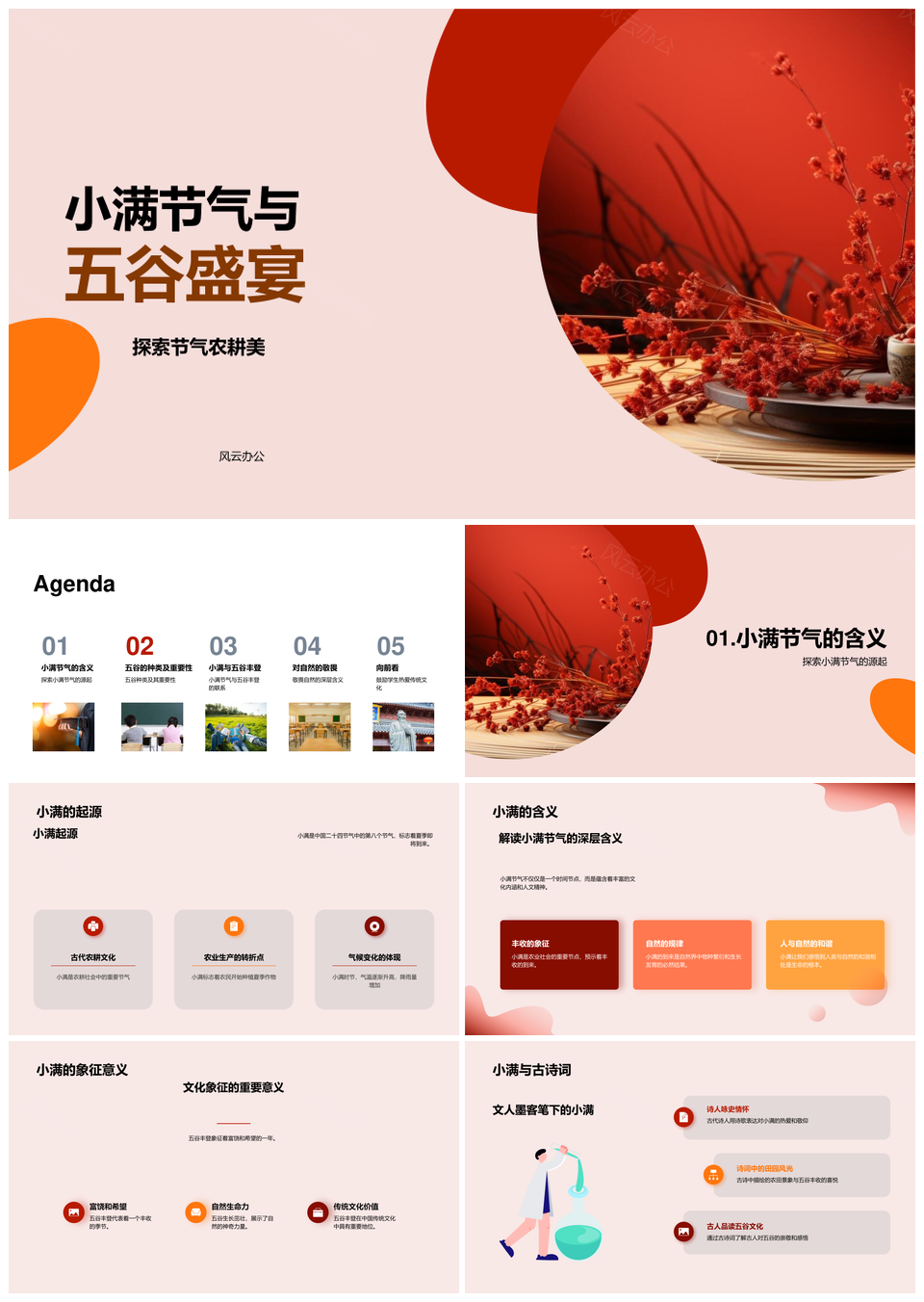 风云办公提供的小满农耕美五谷丰登传统文化PPT模板,下载格式为pptx,一共28页,作品中文字及图均可以修改和编辑,图片更改请在作品中右键图片并更换,文字修改请直接点击文字进行修改。
