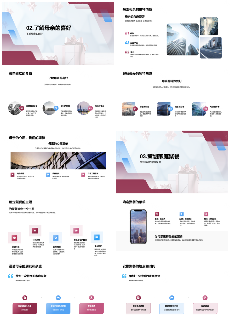 这是一张母亲节家宴花束相册记录母爱责任PPT模板,包含母亲节、家宴、花束、相册、记录、母爱、责任等主题内容,也可用作母亲节家宴花束相册、家宴花束相册记录、花束相册记录母爱、相册记录母爱责任、母亲节记录母爱责任、母亲节家宴花束记录、母亲节家宴相册责任、家宴花束母爱责任、家宴相册母爱责任、母亲节花束相册记录、花束相册母爱责任、母亲节相册母爱责任、家宴花束相册母爱、母亲节花束记录母爱、相册母爱责任等PPT场景使用。