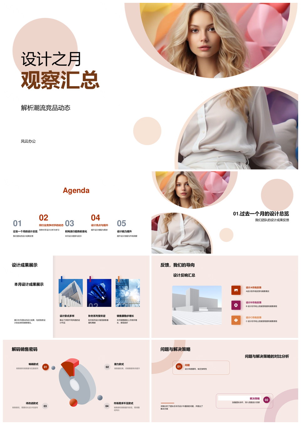 风云办公提供的设计之月潮流竞品设计成果销售解析PPT模板,下载格式为pptx,一共28页,作品中文字及图均可以修改和编辑,图片更改请在作品中右键图片并更换,文字修改请直接点击文字进行修改。