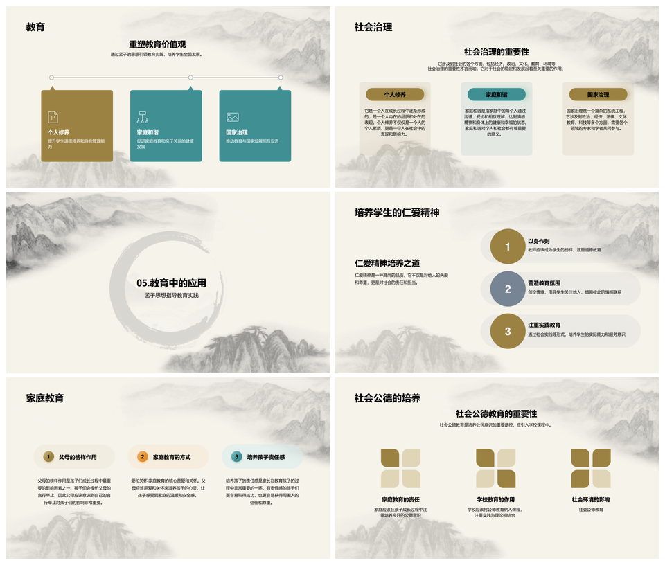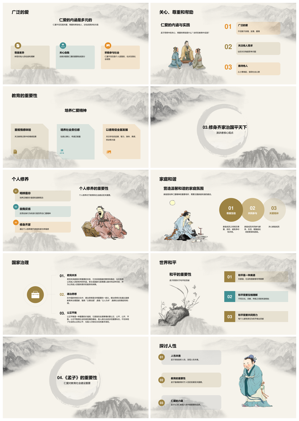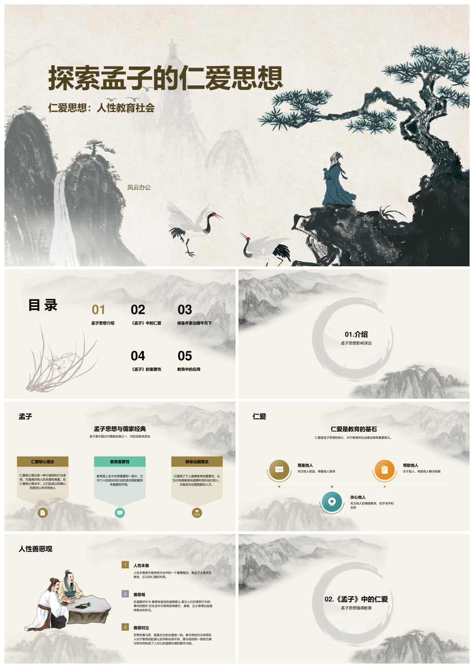 风云办公提供的绿色山水国风孟子思想探索培训课件,下载格式为pptx,一共24页,作品中文字及图均可以修改和编辑,图片更改请在作品中右键图片并更换,文字修改请直接点击文字进行修改。