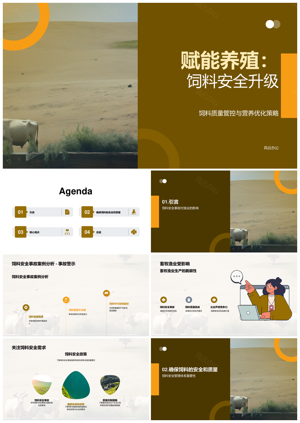 风云办公提供的畜牧渔业饲料安全国标升级质控案例PPT模板,下载格式为pptx,一共22页,作品中文字及图均可以修改和编辑,图片更改请在作品中右键图片并更换,文字修改请直接点击文字进行修改。